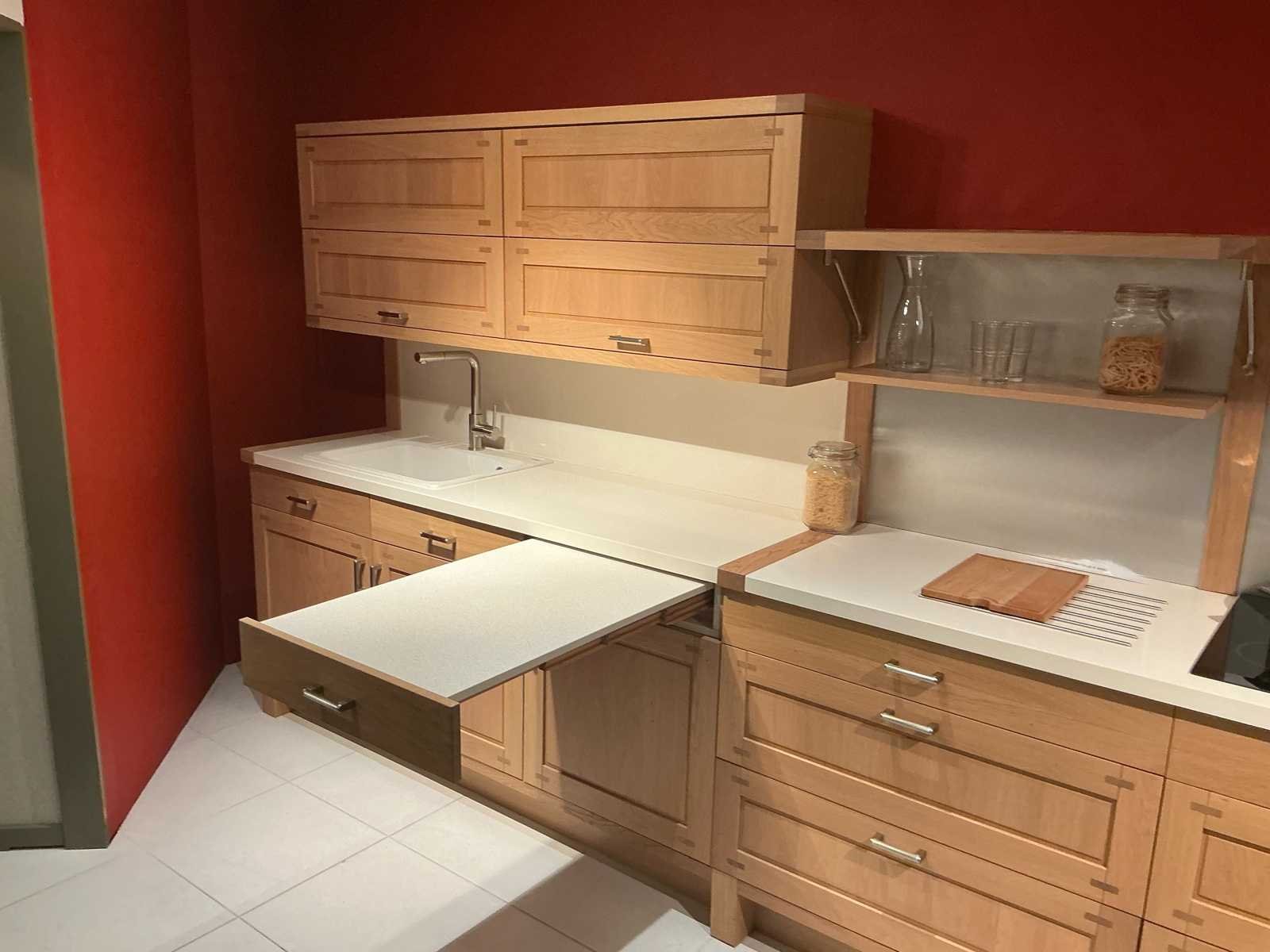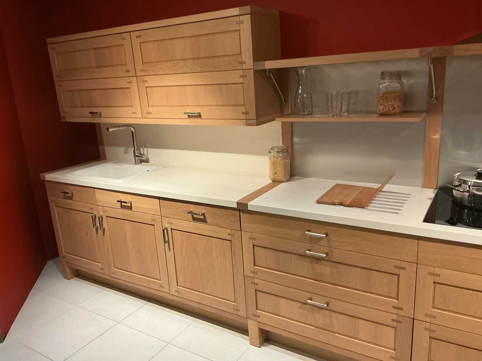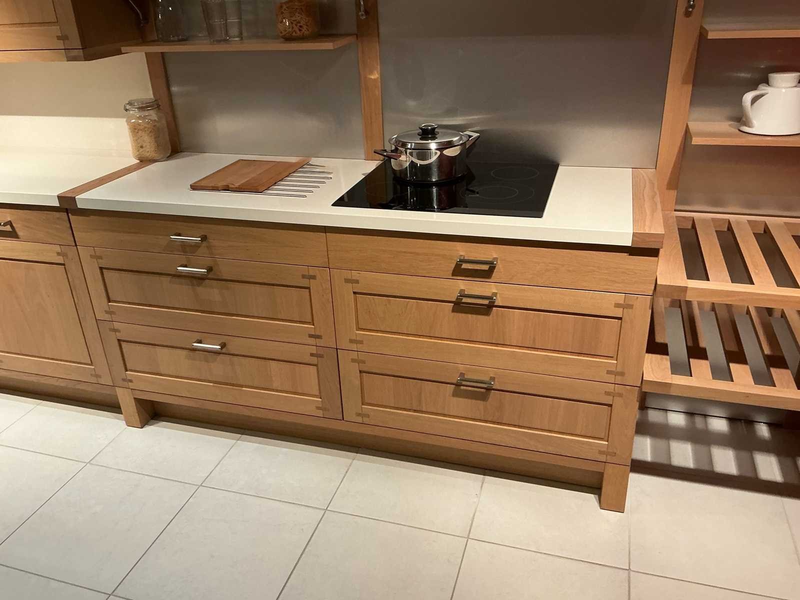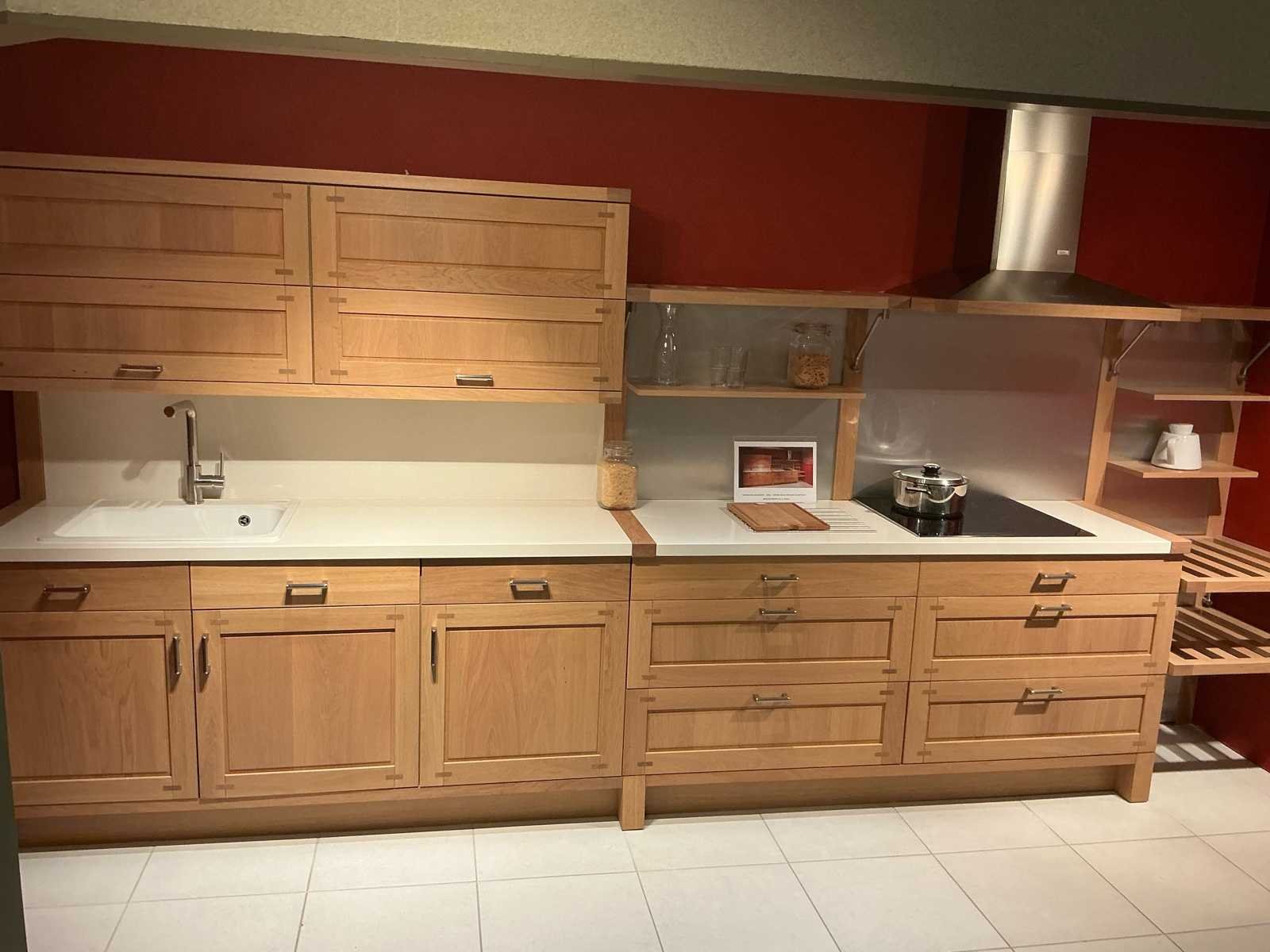 Toonzaal keuken te koop wegens verbouwing toonzaal, zelf uit breken voor geen schade te veroorzaken voor verkoop. ZONDER kookplaat, dampkap Roblin, werkblad in Composite 4cm opgedikt in verstek, spoelbak met uittrekbare kraan, totale lengte 4m20cm en breedte 60cm. Extra uitschuifbaar werkblad. No Kraan: UitrekbaarUittrekbaar Afzuigkap: Roblin