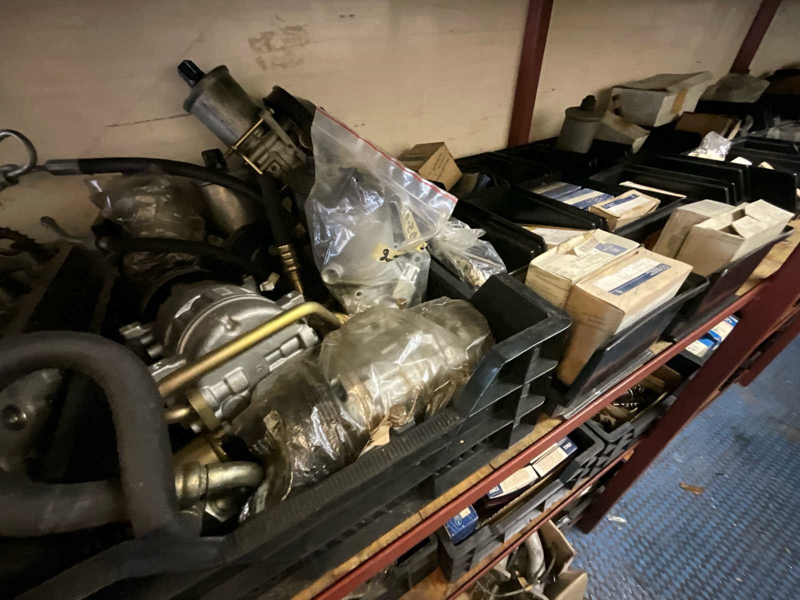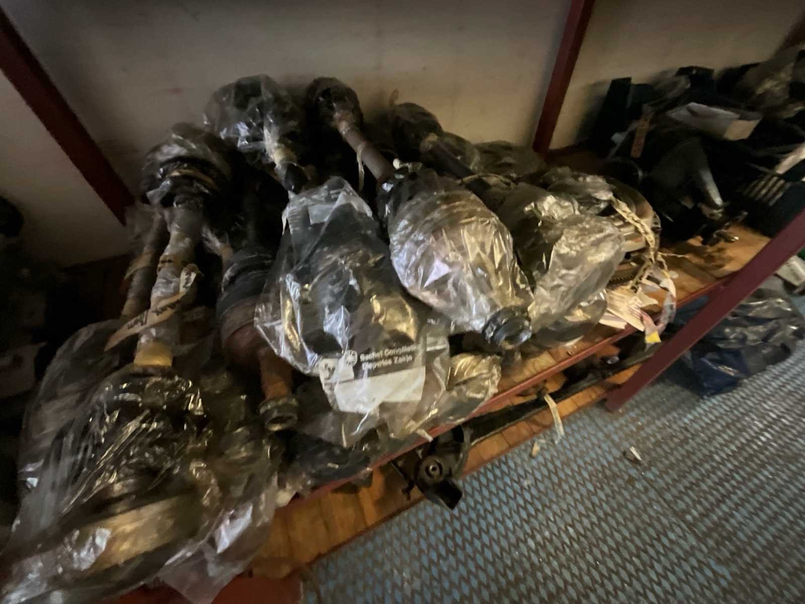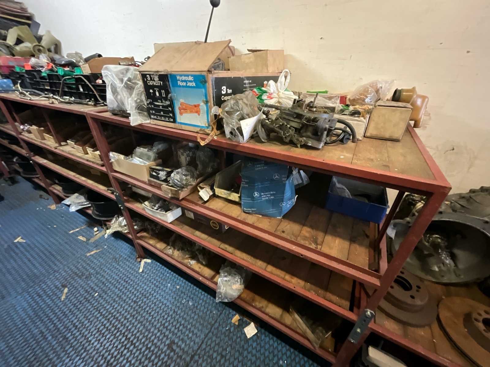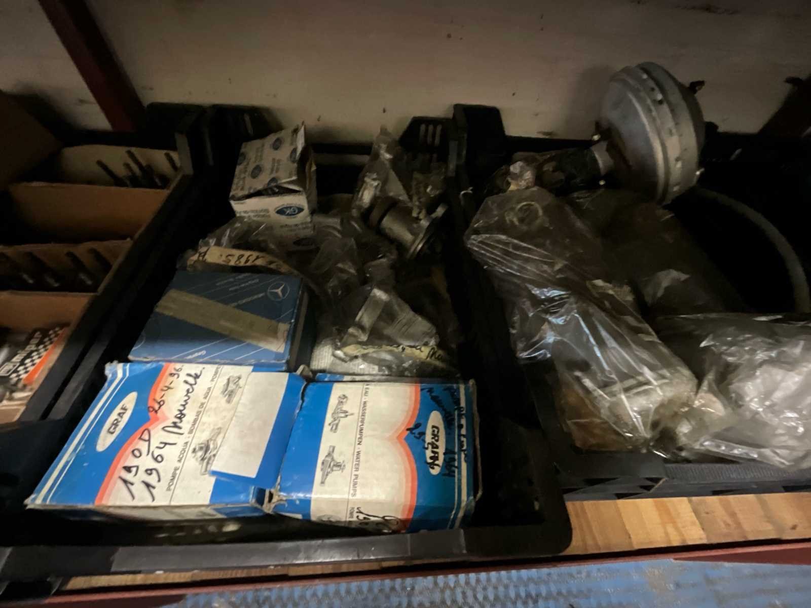 Een uitzonderlijk grote en complete onderdelenvoorraad voor klassieke Mercedes-Benz modellen uit de 70/80/90’er jaren, hoofdzakelijk voor de types W123 – W124 – W201 (190-serie / 200 / 230 / 250 / 260 / 300 …). Dit lot komt uit een oude onderdelenstock van een specialist en bevat zowel mechanische onderdelen (aandrijving, transmissie, ophanging) als elektrische en motorcomponenten. Inhoud o.a.: ±43 handgeschakelde versnellingsbakken van diverse Mercedes benzine- en dieselmotoren ±20 cardan-achterassen / aandrijfassen achterzijde + ±15 tussen cardans 1 gereviseerde achterbrug / differentieel / “pont arrière” ±10 complete koppelingssets met drukplaat ±13 alternatoren/dynamo’s en ±20 startmotoren (deels verpakt) ±7 turbo’s ±6 oliepomphuizen ±2 aircopompen Waterpompen, cilinderkoppen / motor koppen (±8 stuks gemeld), vliegwielen, koppelingen, spruitstukken, carburateurs Remdelen inclusief ±6 nieuwe remschijven in originele verpakking Ventilatorbladen, koelventilatoren, radiatorventilatoren Diverse ophangingsdelen, subframes, draagarmen, fusees Aandrijfassen met homokineten, gelabeld en in folie Elektrische componenten zoals dynamo’s, starters, verlichting (koplampen/achterlichten), relais, enz. Klein materiaal in bakken: pakkingen, keerringen, rubbers, bouten, steunen, sensoren, bougies, ontstekingsdelen, enz. Banden en velgen: ca. 7 banden op stalen velg en ca. 4 banden op alu velg (verschillende profielen, weg en terrein) Losse uitlaatdelen, koel- en luchtkanalen, vloeistoffen Belangrijk: Grote partij, > 2.000 onderdelen. Alles staat gesorteerd op zware metalen rekken met houten planken; deze rekken/bakken zijn inbegrepen bij het lot. Onderdelen werden droog opgeslagen in een gesloten trailer. No Merk: Mercedes Model: groot lot onderdelen (1964-1993)