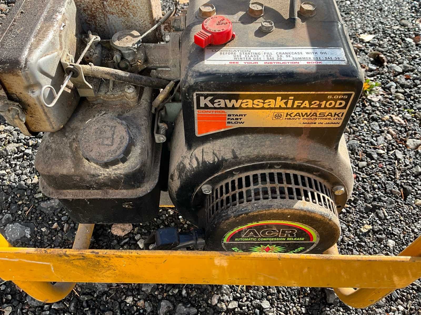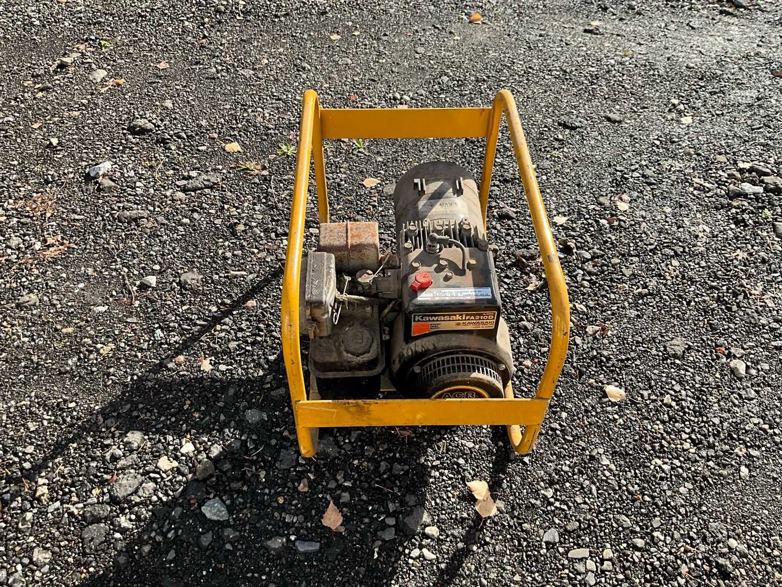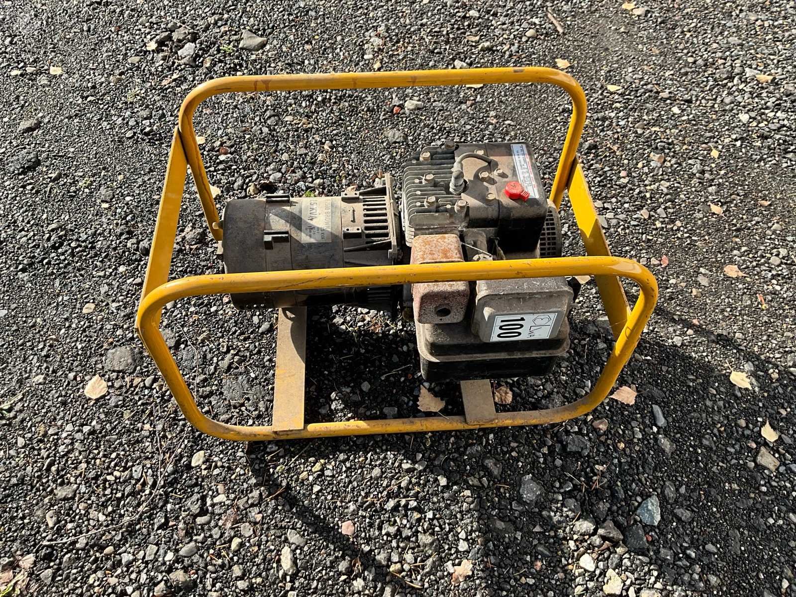 Degelijke draagbare benzinegenerator, aangedreven door een betrouwbare Kawasaki FA210D motor (5 pk), gekoppeld aan een GE Brown 2500 generatorunit van 2,5 kVA. Uitgevoerd in een stevig geel metalen draagframe, gemakkelijk te verplaatsen en geschikt voor gebruik op bouwplaats, werkplaats of als noodstroomvoorziening. De generator levert 220 Volt / 50 Hz en is voorzien van een robuuste Japanse industriële motor met ACR (Automatic Compression Release) voor eenvoudig starten. Opgelet: Niet getest, wel werkend weggezet (staat al geruime tijd stil). steeds droog opgeslagen No Merk: Kawasaki FA210D benzinegenerator – 2,5 kVA – GE 2500 Brown Capaciteit.: 3kVA Benzine: true Motorvermogen (kW): 4kW Mobiel: true Machinegewicht: 40kg Totale afmeting L: 60mm Totale afmeting Breedte: 40mm Totale afmeting Hoogte: 45mm