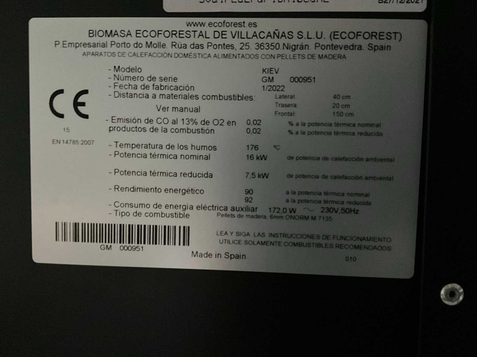 Nieuw model (einde reeks) Kanalisatie 2x 120mm (max. 7m) ACHTER Kleur zwart Energieklasse A+ No Merk: ECOFOREST Type: Kiev Eigen gewicht: 170kg Vrijstaand: true Vermogen: 16kW Totale afmeting lxbxh: 589x690x1225mm Rookgasaansluiting: 100mm Achteraansluiting: true Lengte: 589 Rendement: 92% Breedte: 690 Hoogte: 1225