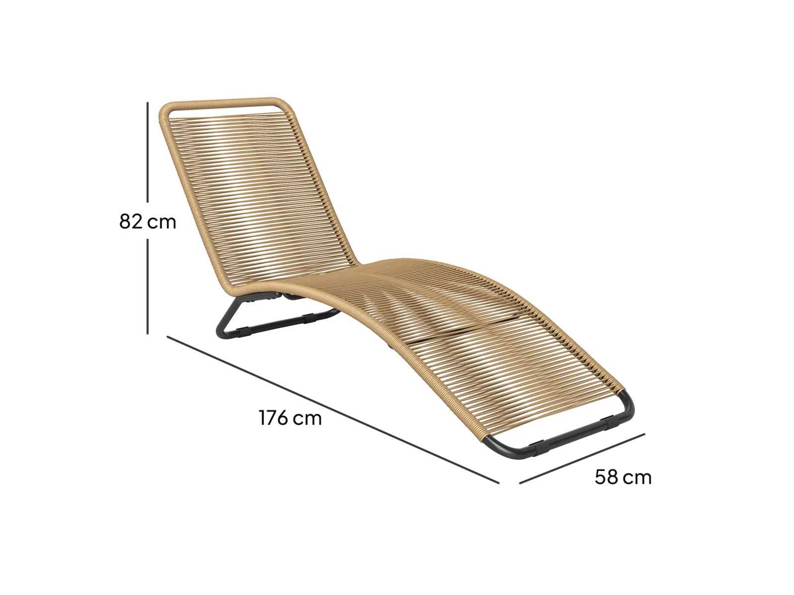 Specificaties: - Kleur: naturel, zwart - Materiaal: staal, PE rattan -Zon. totaal: 176L x 58B x 82H cm -Zon. Afmetingen zitting: 58B x 130D cm - Zithoogte: (zonder kussen) 32 cm -Zon. Rugleuning: 58B x 70L cm - Aanbevolen maximale belasting: 120 kg Non