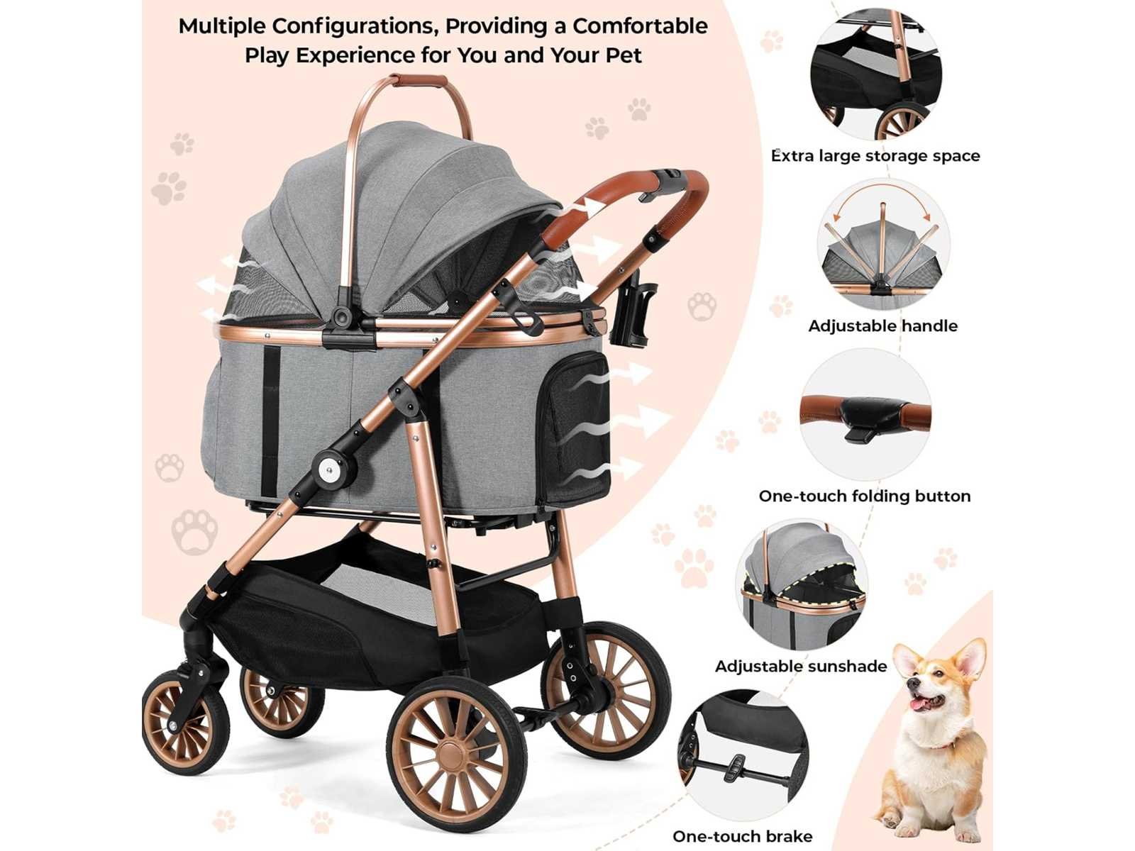 4-in-1 hondenbuggy, opvouwbaar tot 25 kg