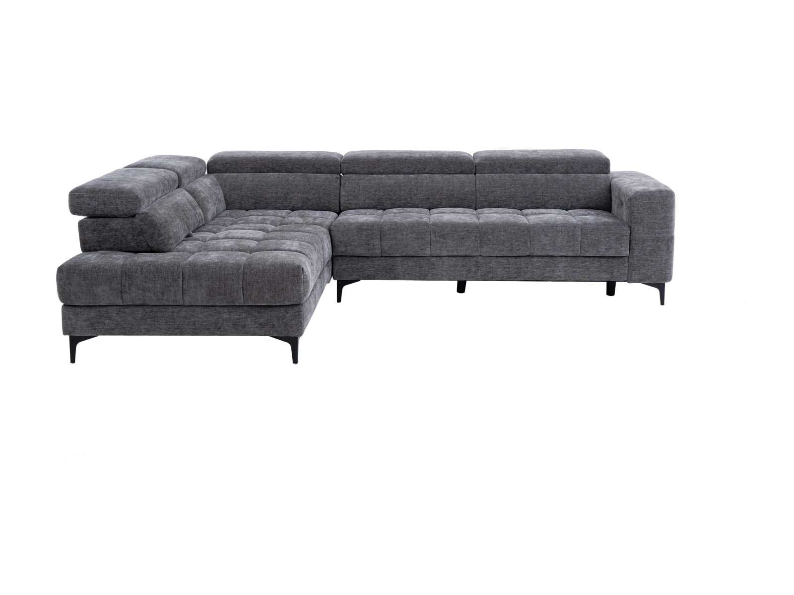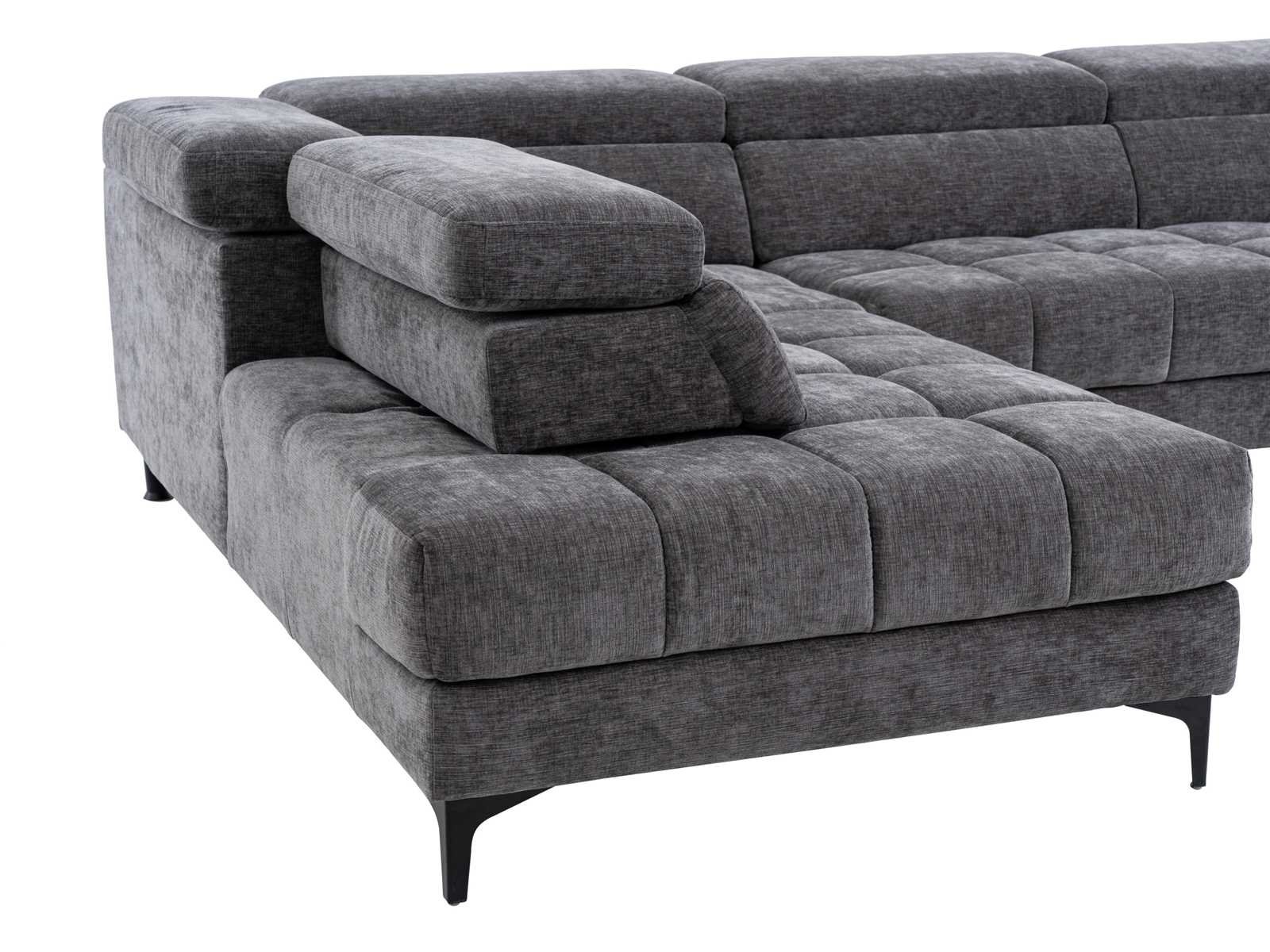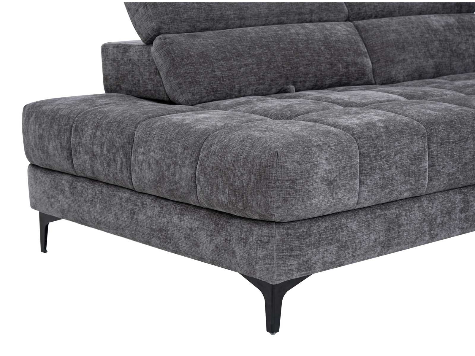 Kenmerken Kleur (tint): Antracietgrijs Materiaal: 100% Polyester Materiaal (basis): Metaal Structuur: Hout, Multiplex, Metaal Afwerking: heide, getuft Hoektype: Linker hoek Aantal zitplaatsen: 5 zitplaatsen Opties: Hoofdsteun, Zero wall systeem, Verschuifbare zitting Vulling zitting: Polyurethaanschuim met hoge veerkracht Dichtheid zitting: 30 kg/m³ Zadelophanging: Nosag-veren, Kruisende elastische banden, Schroefveren Vulling rugleuning: Polyurethaanschuim Dichtheid rugleuning: 16 kg/m³ Ophanging rugleuning: Nosag-veren, in elkaar grijpende elastische banden Met armleuningen Maximale hellingsgraad: 105° Aantal hoofdsteunen: 5 Opties hoofdsteun: Relax Reeks: Prestige Edition Maximale ondersteunde belasting: 600 kg Zelf in elkaar zetten Grootte Lengte: 298 cm Hoogte: 75 cm Diepte: 211,5 cm Hoogte poot: 13 cm Zithoogte: 47 cm Diepte zitting: 57 cm Breedte van de chaise longue: 112 cm Zitdiepte van de chaise longue: 165 cm Diepte van de relaxpositie: 131 cm Hoogte zendspoel: 94 cm Non