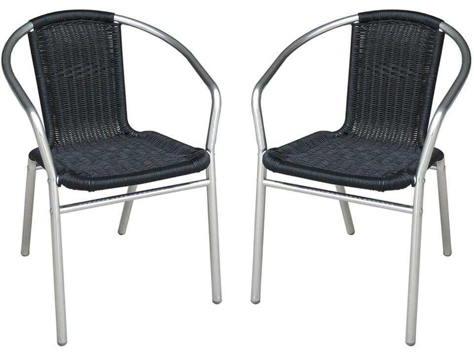 Stapelbare tuinfauteuils in aluminium en zwart geweven hars (x6)