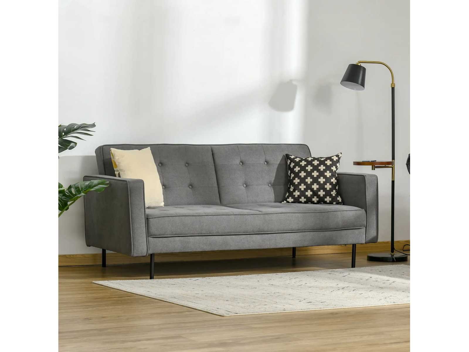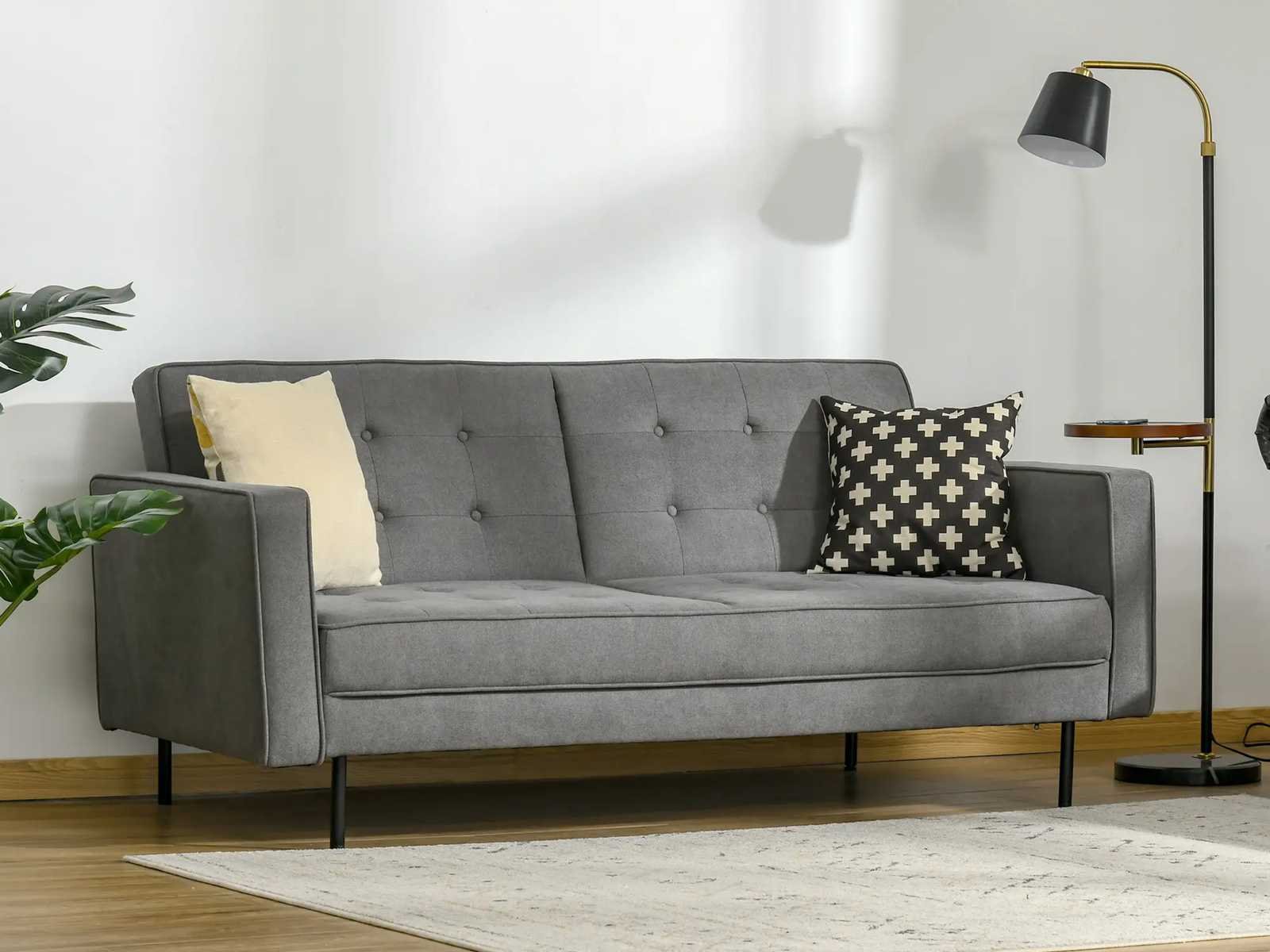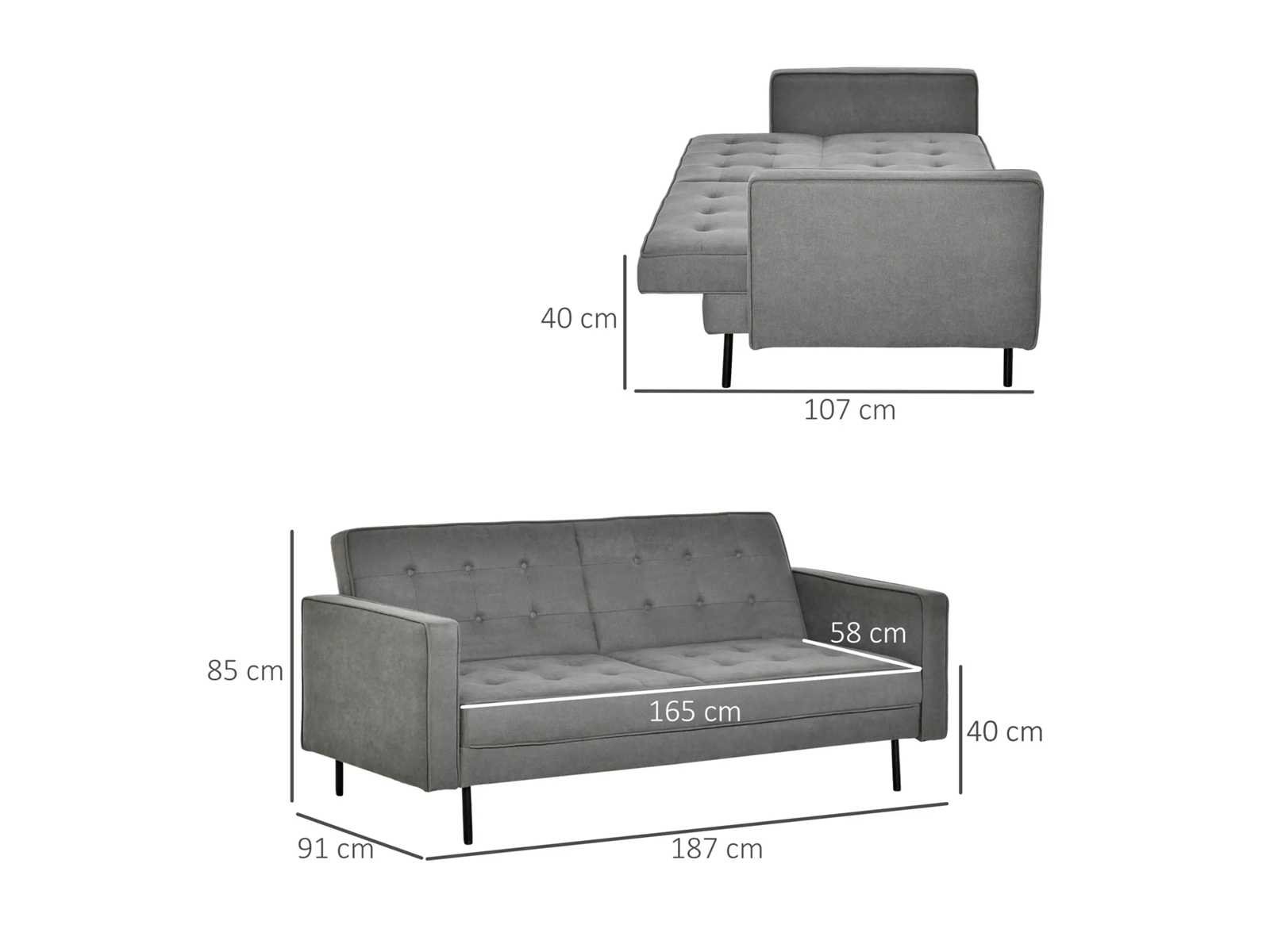 Technische gegevens: ? Kleur: Grijs ? Materialen: Katoenen stof, eucalyptus, MDF, schuim ? Algemene afmetingen: 187 cm (B) x 91 cm (D) x 85 cm (H) (bank), 165 cm (B) x 107 cm (D) x 40 cm (H) (bed) ? Afmetingen zitting: 165 cm (breedte) x 58 cm (diepte) x 40 cm (hoogte) ? Diepte kussen: 13 cm ? Afmetingen rugleuning: 163 cm (breedte) x 47 cm (hoogte) ? Afmetingen armleuning: 10 cm (breedte) x 74 cm (diepte) x 26 cm (hoogte) ? Draagvermogen: 100 kg (per stoel) Non