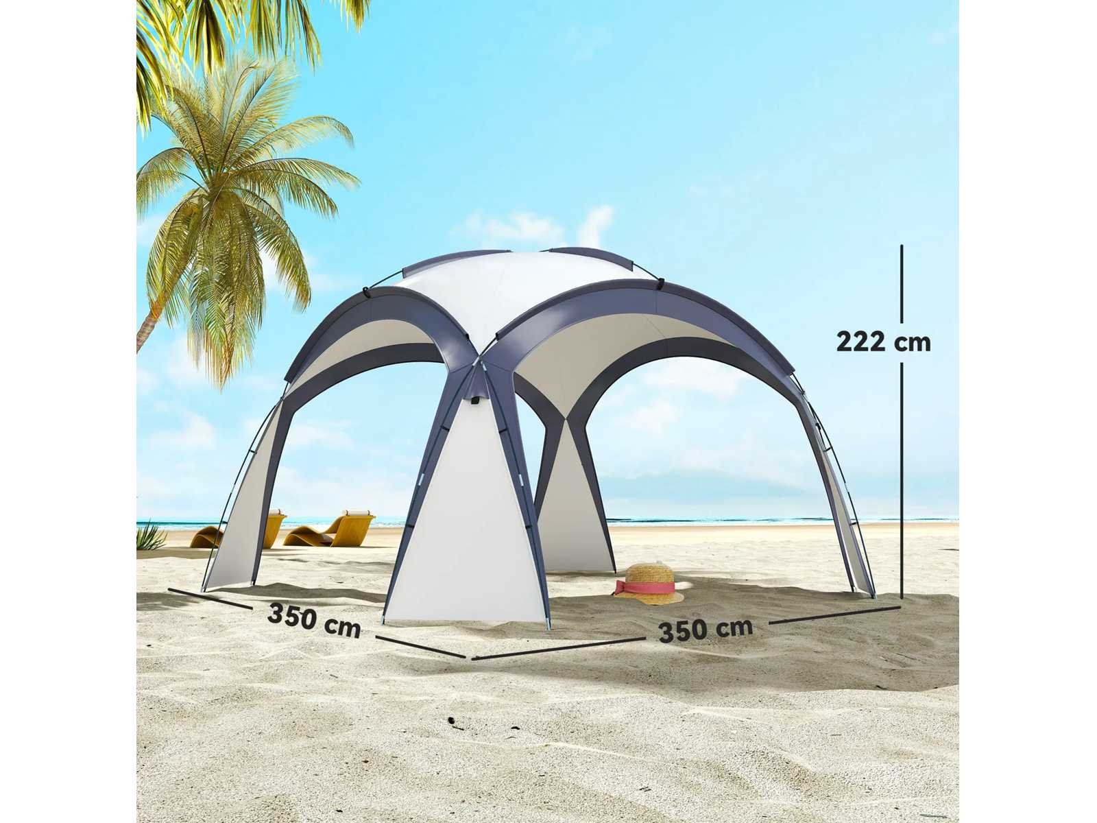 Specificaties: - Hoofdkleuren: lichtgrijs, blauw - Belangrijkste materialen: glasvezel, polyester met hoge dichtheid - Totale afmetingen: 3,50L x 3,50 B x 2,30 H m -Zon. Deur: 2.36L x 1.85H m - Diameter buisframe: 9,5 mm Non