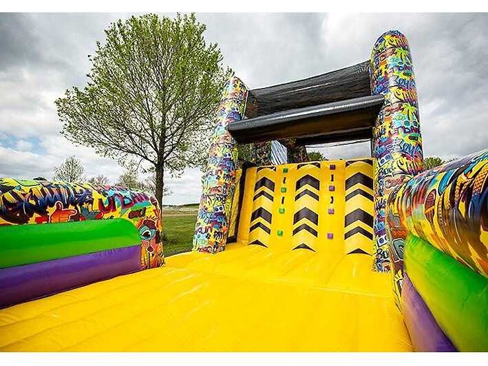 Freestyle Run hindernisbaan 22 meter Hindernisbaan bouwjaar 2024 In nieuwstaat Bestaat uit 2 stukken, opgerold exclusief blazers No Merk: JB Model: Freestyle Run Gewicht: 250kg Lengte: 2200cm Breedte: 400cm Hoogte: 400cm