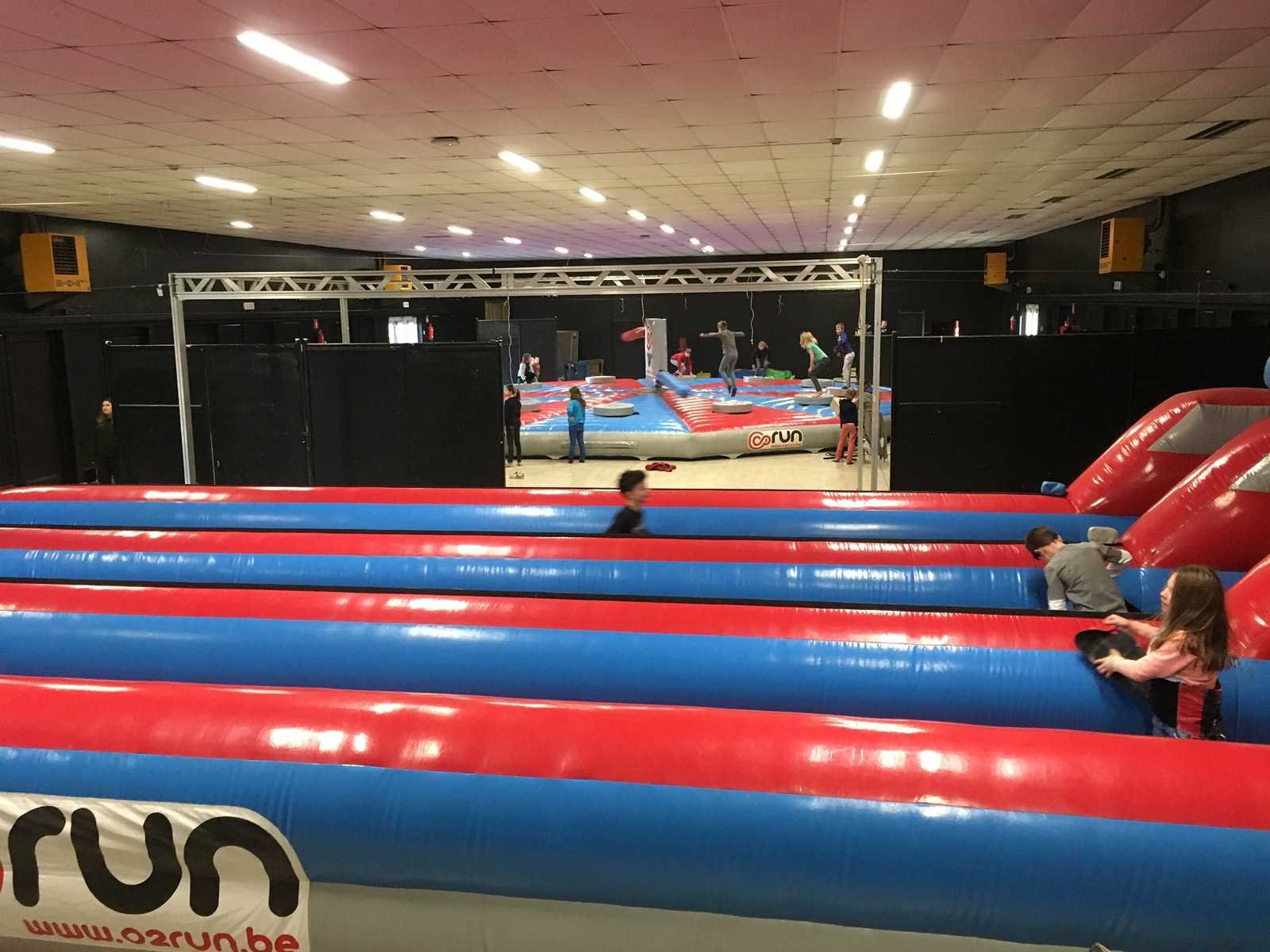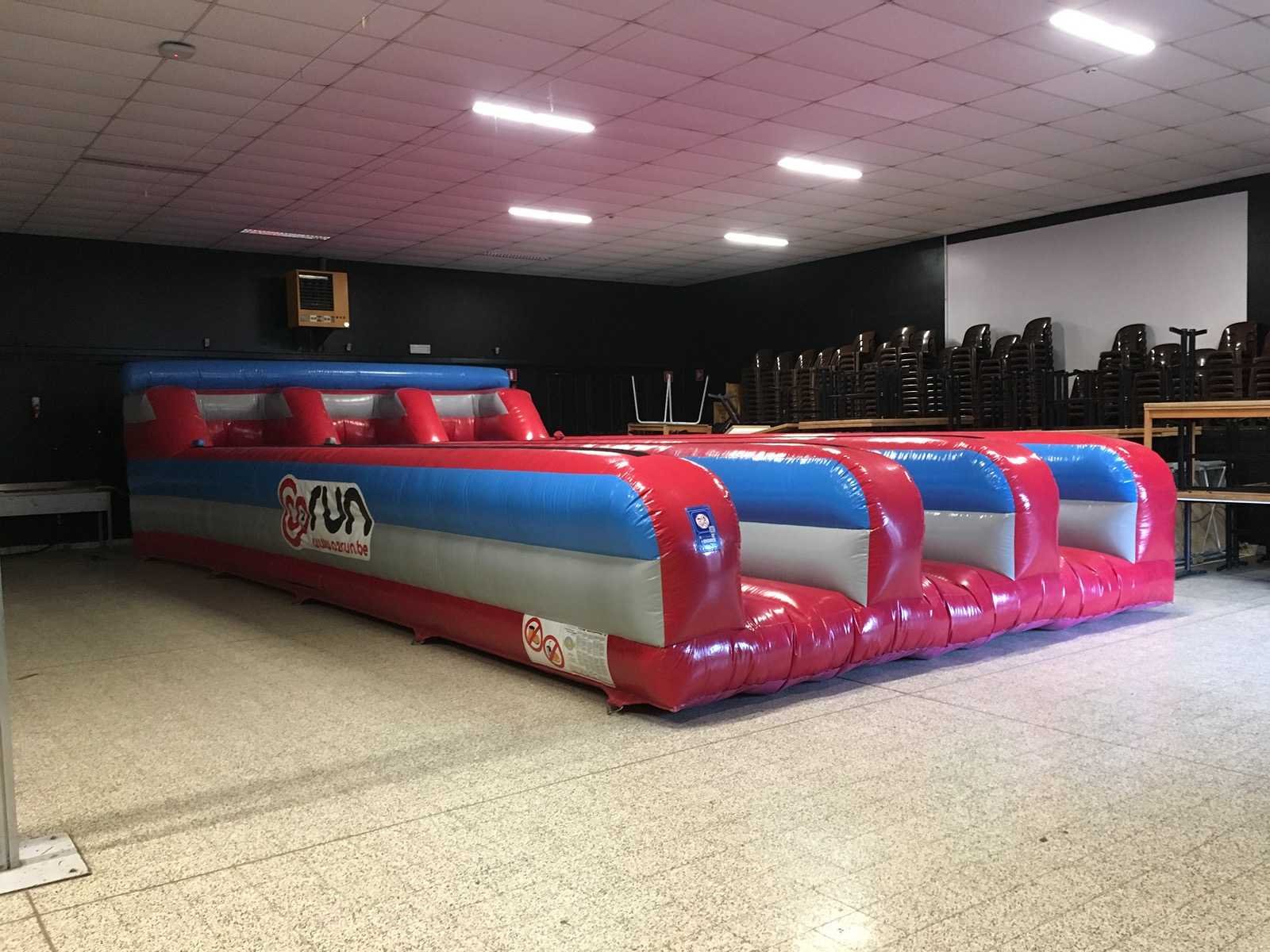 3-lane bungee run in goede, gebruikte staat upgrades: -3 strong bungee cords - 3 veiligheidsriemen/harnas met riem exclusief blazer No Merk: Airquee Model: bungeerun Gewicht: 250kg Lengte: 11000cm Breedte: 4000cm