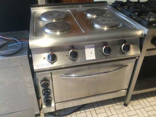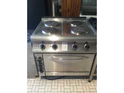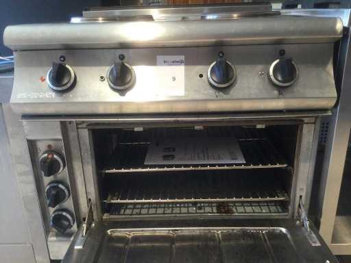 Elektrisch fornuis met oven; Nee Merk: Inoxsan Kookzones: 4 Oven: true Spanning: 400V Gewicht: 120kg Lengte: 800mm Breedte: 800mm Hoogte: 850mm Materiaal: rvs
