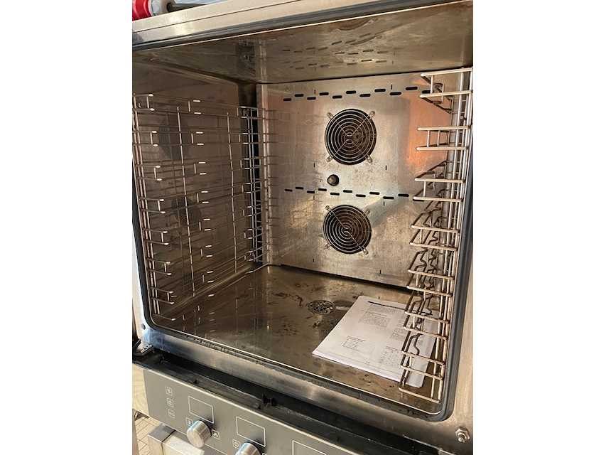 Met onderstel voor 9 roosters GN1/1; Platen 60x40cm ook mogelijk; 2 ventilatoren; Nee Merk: Lainox Alphatec Type: ICET071E Materiaal: rvs Aantal niveau's: 7 Vermogen: 12500W Aansluiting: 400V Digitale besturing: true Elektrisch: true Rvs: true Totale afmeting L: 78cm Totale afmeting Breedte: 74cm Totale afmeting Hoogte: 95cm