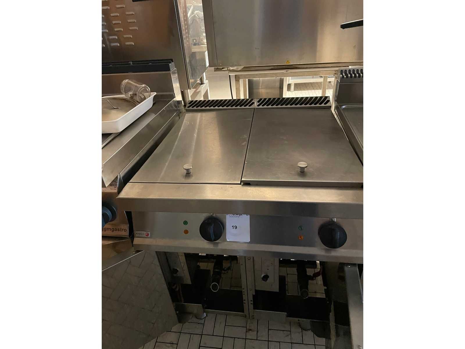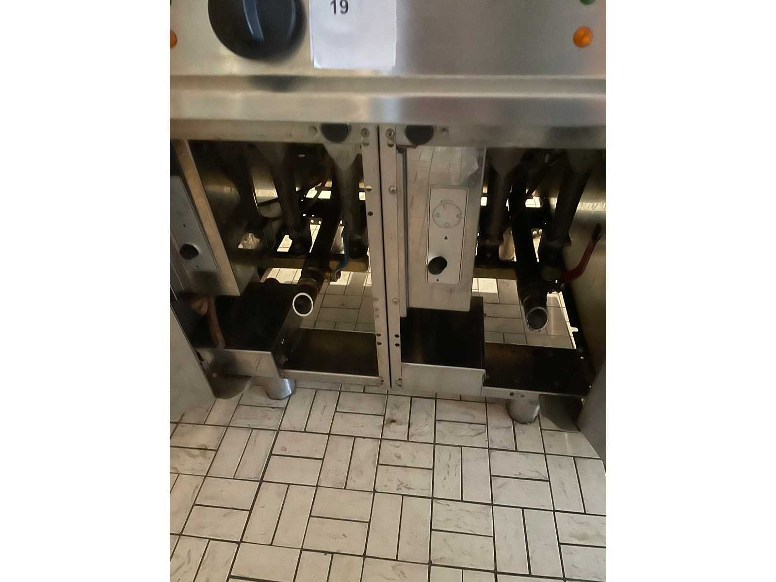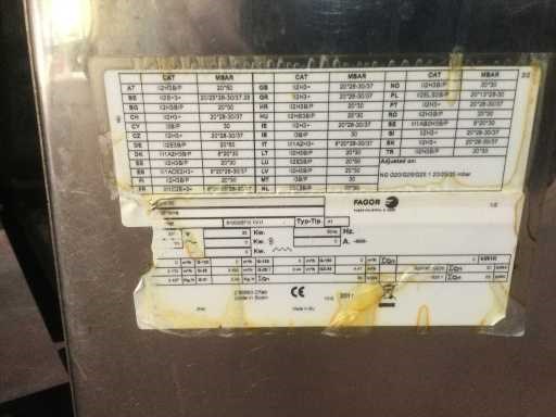 Dubbele gasfriteuse 2 x 15 liter; met 2 manden; Nee Merk: Fagor Type: serie 700 Rvs: true Gas: true Dubbel: true Thermostaat: true Aftapkraan: true Aansluiting: 230V Capaciteit.: 30kW Eigen gewicht: 60kg Totale afmeting lxbxh: 700x780x850mm