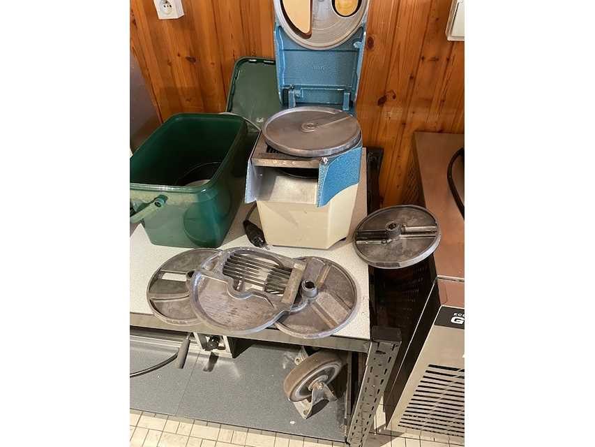 Groentensnijmachine met 7-tal verschillende snijschijven; Nee Merk: Dito Sama Type: TR21 Aansluiting: 230V Totale afmeting L: 220mm Totale afmeting Breedte: 440mm Totale afmeting Hoogte: 400mm