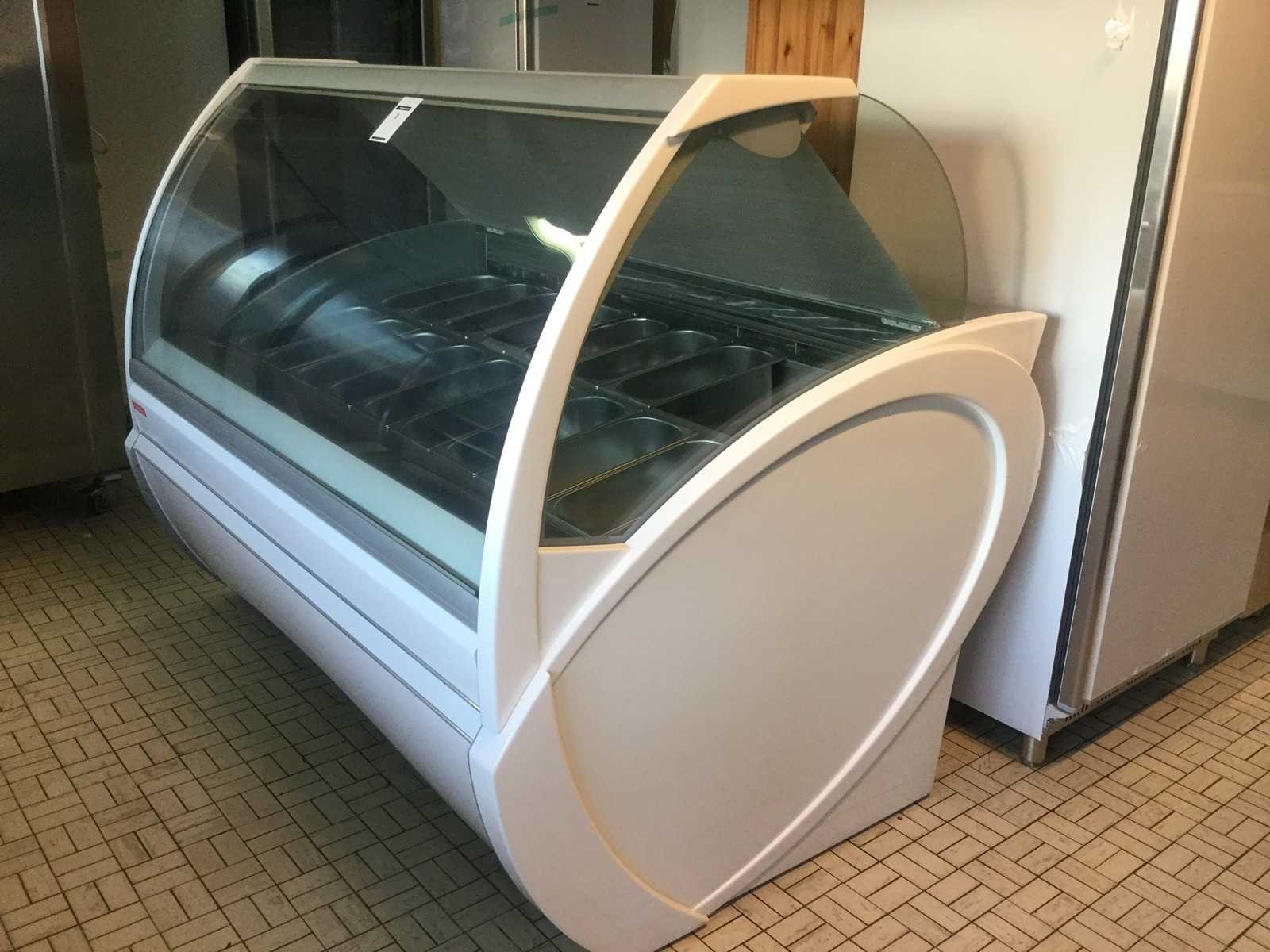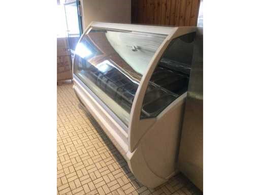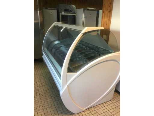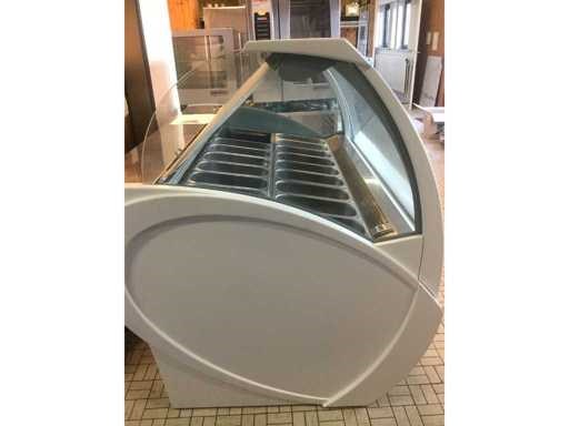 Ideaal voor ambachtelijk ijs; geschikt voor 18 bakken van 5 liter; bakken inbegrepen; met gebogen kantelbare voorruit; geforceerde koeling; verlichting; werkblad; rolgordijn; temperatuurbereik -14 tot -18 °C; Nee Merk: Oscartielle Ingebouwde koelcompressor: true Aansluiting: 230V Eigen gewicht: 250kg Digitale uitlezing: true Totale afmeting L: 1750mm Totale afmeting Breedte: 1200mm Totale afmeting Hoogte: 1380mm