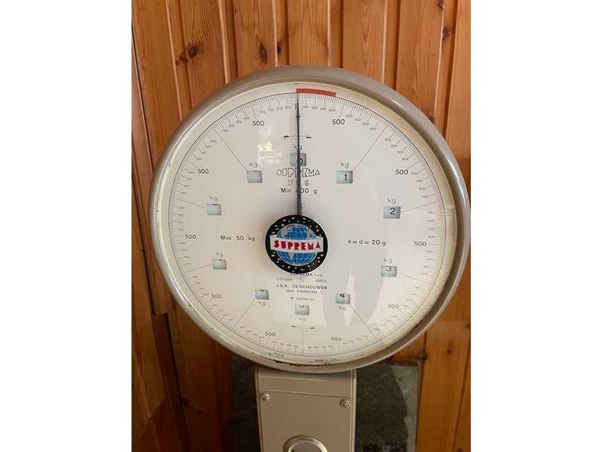 Bascule; met voet; Nee Merk: Suprema Weegbereik min.: 100g Weegbereik max: 50000g Afleesnauwkeurigheid: 20g Plateau afm. l: 480mm Plateau afm. b: 500mm Totale afmeting L: 480mm Totale afmeting Breedte: 650mm Totale afmeting Hoogte: 950mm