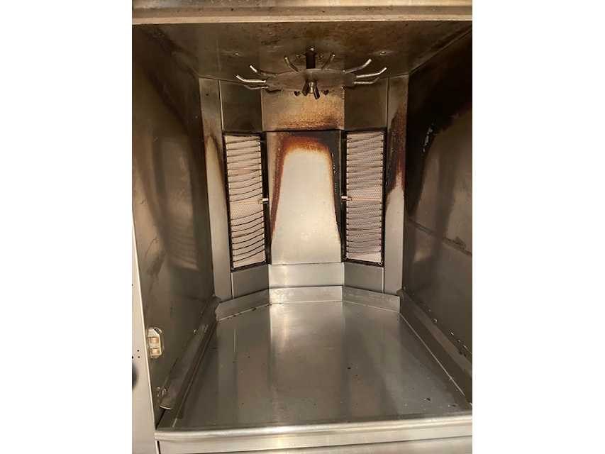 Rotissoire polygrill voor ribbetjes of andere gerechten; 12 haken voor spiesen; gas; Nee Merk: Alpina Model: ITG1A Product type: grill Lengte: 72cm Breedte: 73cm Hoogte: 78cm Materiaal: rvs