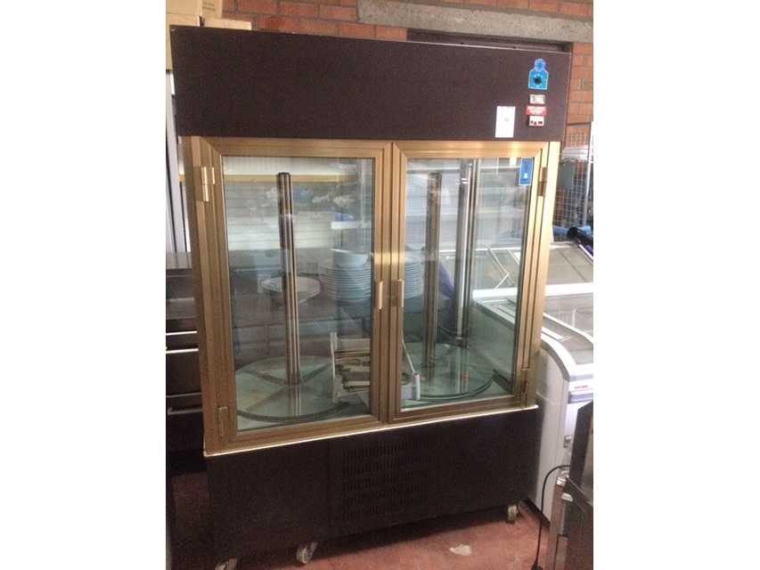 Roterende dubbele taartenkoeler; carrousel voor gebak te presenteren; Nee Eigen gewicht: 150kg Totale afmeting L: 1360mm Totale afmeting Breedte: 720mm Totale afmeting Hoogte: 1940mm