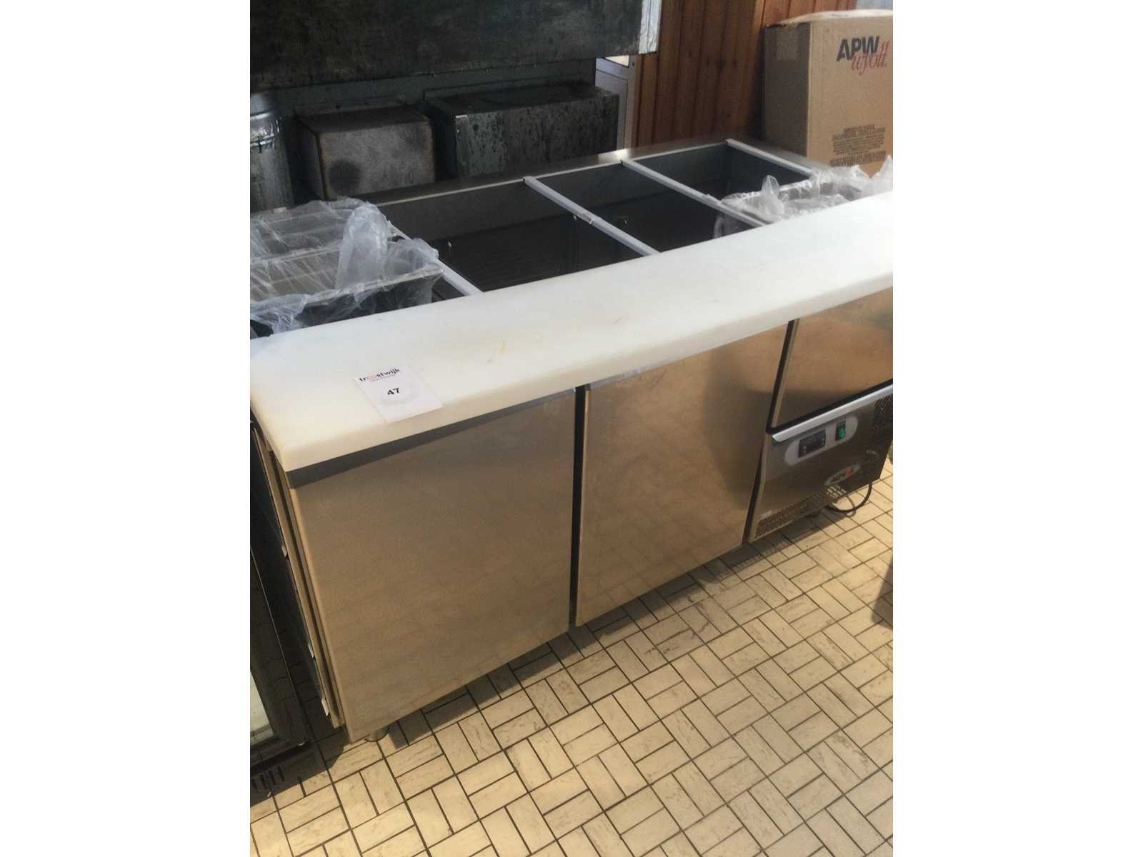 Koelwerkbank met saladette en uitschuifbaar werkblad; beursmodel; met 2 volle deuren en 1 halve deur; saladette ruimte voor 4xGN1/1 bakken; Nee Merk: Alinox Type: TS3GN Eigen gewicht: 90kg Ingebouwde koelcompressor: true Digitale uitlezing: true Rvs: true Aansluiting: 230V Totale afmeting L: 140cm Totale afmeting Breedte: 80cm Totale afmeting Hoogte: 85cm