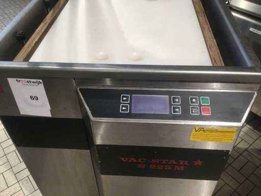 Rvs vacuümeermachine met verhoogd deksel; Nee Merk: Vac-Star Type: S225M PX Lengte sealbalk: 470mm Aantal sealbalken: 2 Aantal kamers: 1 Verrijdbaar: true Aansluiting: 400V Totale afmeting L: 560mm Totale afmeting Breedte: 650mm Totale afmeting Hoogte: 950mm