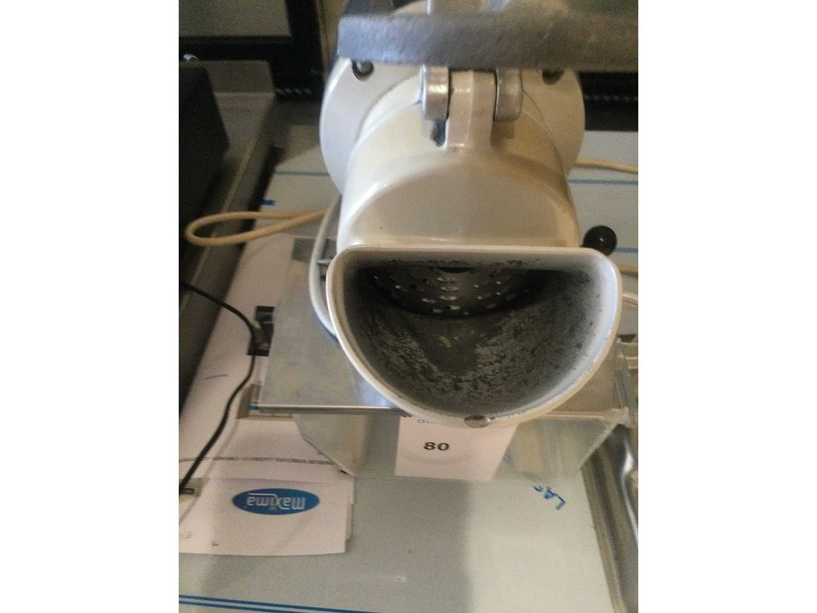 Krachtige en efficiënte kaasraspmolen; 1 raspschijf; 1 opvangbak; Nee Merk: Santos Type: N°2 Aansluiting: 230V Eigen gewicht: 14kg Totale afmeting L: 360mm Totale afmeting Breedte: 250mm Totale afmeting Hoogte: 420mm