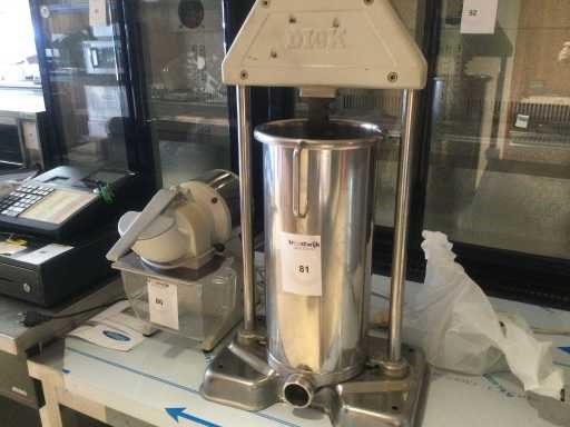 Manuele stopbus; tafelmodel; met alle toebehoren; 2 snelheden; Nee Merk: Dick Model: FD12 Gewicht: 25kg Lengte: 380cm Breedte: 250cm Hoogte: 740cm Materiaal: rvs