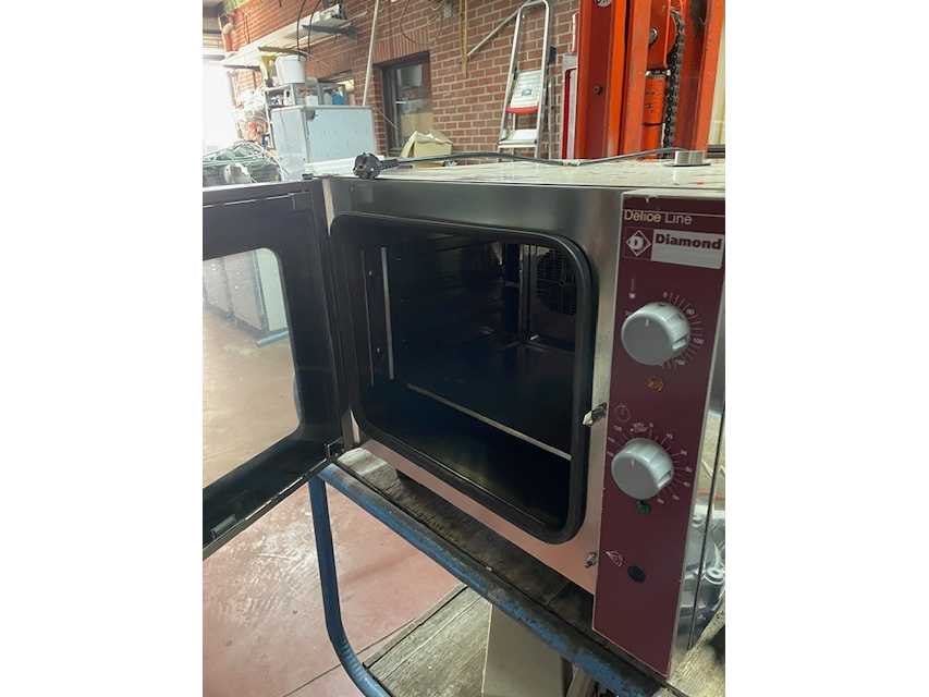 Convectieoven; 2 ventilatoren; 1 ventilator maakt lawaai; Nee Merk: Diamond Type: CPE434N Aansluiting: 230V Elektrisch: true Rvs: true Vermogen: 3,465kW Totale afmeting L: 66cm Totale afmeting Breedte: 70cm Totale afmeting Hoogte: 55cm Bouwjaar: 2017
