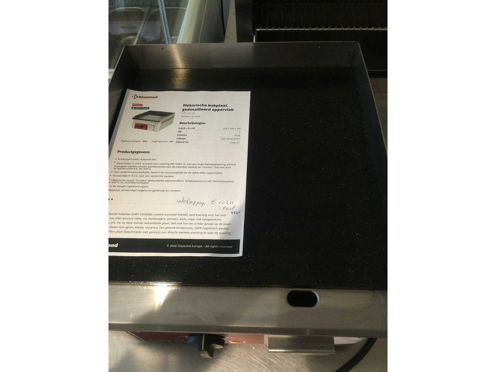 Elektrische bakplaat; geëmailleerd oppervlak; bakoppervlakte 40x40cm; thermostaat 0-300°C; ongebruikt; Nee Merk: Diamond Type: FTE-40/SS Bouwjaar: 2021 Kleur: zwart Gewicht: 19kg Lengte: 400cm Breedte: 450cm Hoogte: 190cm Materiaal: rvs Aansluiting: 230 Vermogen: 3000