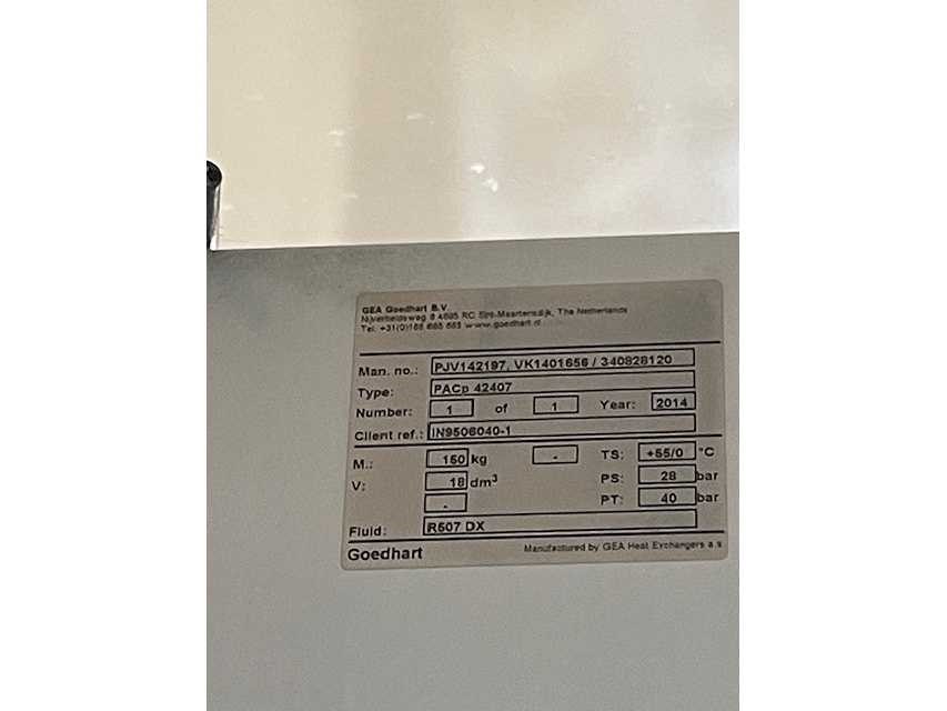 Nee Merk: GEA Type: PACP42407 Bouwjaar: 2014 Afmeting l: 2100mm Afmeting b: 1100mm Afmeting h: 350mm