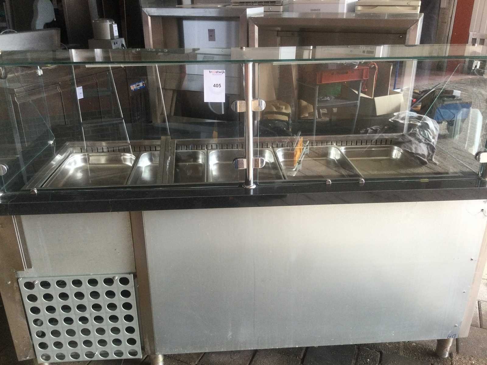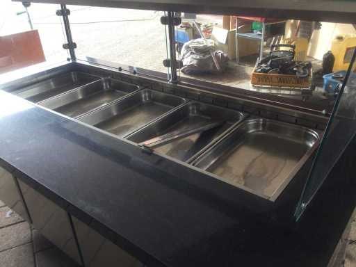 Voor 5 bakken GN1/1; met 3 deuren onderkoeling; glazen constructie top; Nee Materiaal: marmer blad Ingebouwde koelcompressor: true Digitale uitlezing: true Rvs: true Aansluiting: 230V Totale afmeting L: 200cm Totale afmeting Breedte: 100cm Totale afmeting Hoogte: 137cm