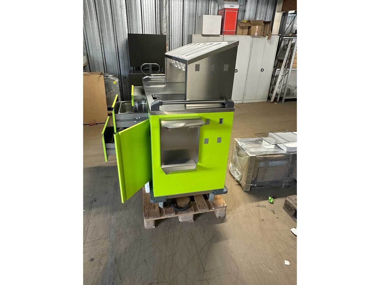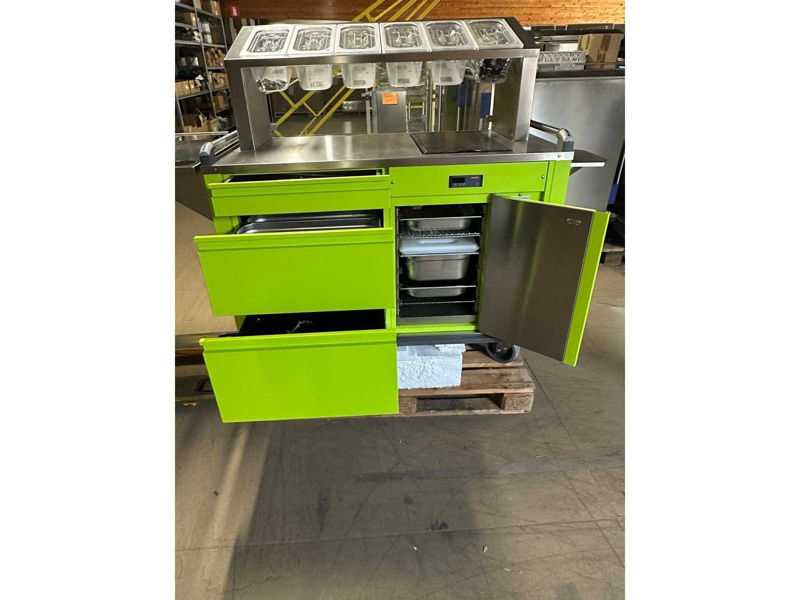 Verwarmde buffetwagen; met laden; met opstand voor bakjes; 1 weerstand kapot; ongebruikt; Nee Kleur: groen