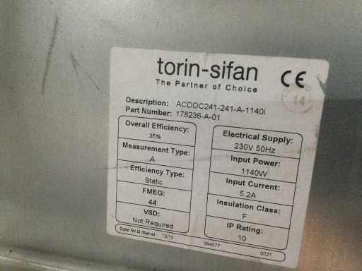 Centrifugaal ventilator 3250m³; 230V; 1140W; ca 37x40x37cm; Nee Merk: Torin Sifan Model: ACDDC241-241 Type: 3250m³