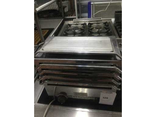 Voor 5 alu warmhoudplaten; Nee Merk: Emga Totale afmeting L: 380cm Totale afmeting Breedte: 220cm Totale afmeting Hoogte: 300cm Rvs: true Vrijstaand: true Regelbare thermostaat: true Aansluiting: 230V