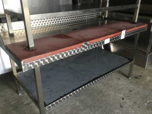 Zware uitvoering; met onderblad; met 3 inlegstukken snijbladen ertolon; in prima staat; Nee Totale afmeting L: 1800mm Totale afmeting Breedte: 900mm Totale afmeting Hoogte: 900mm