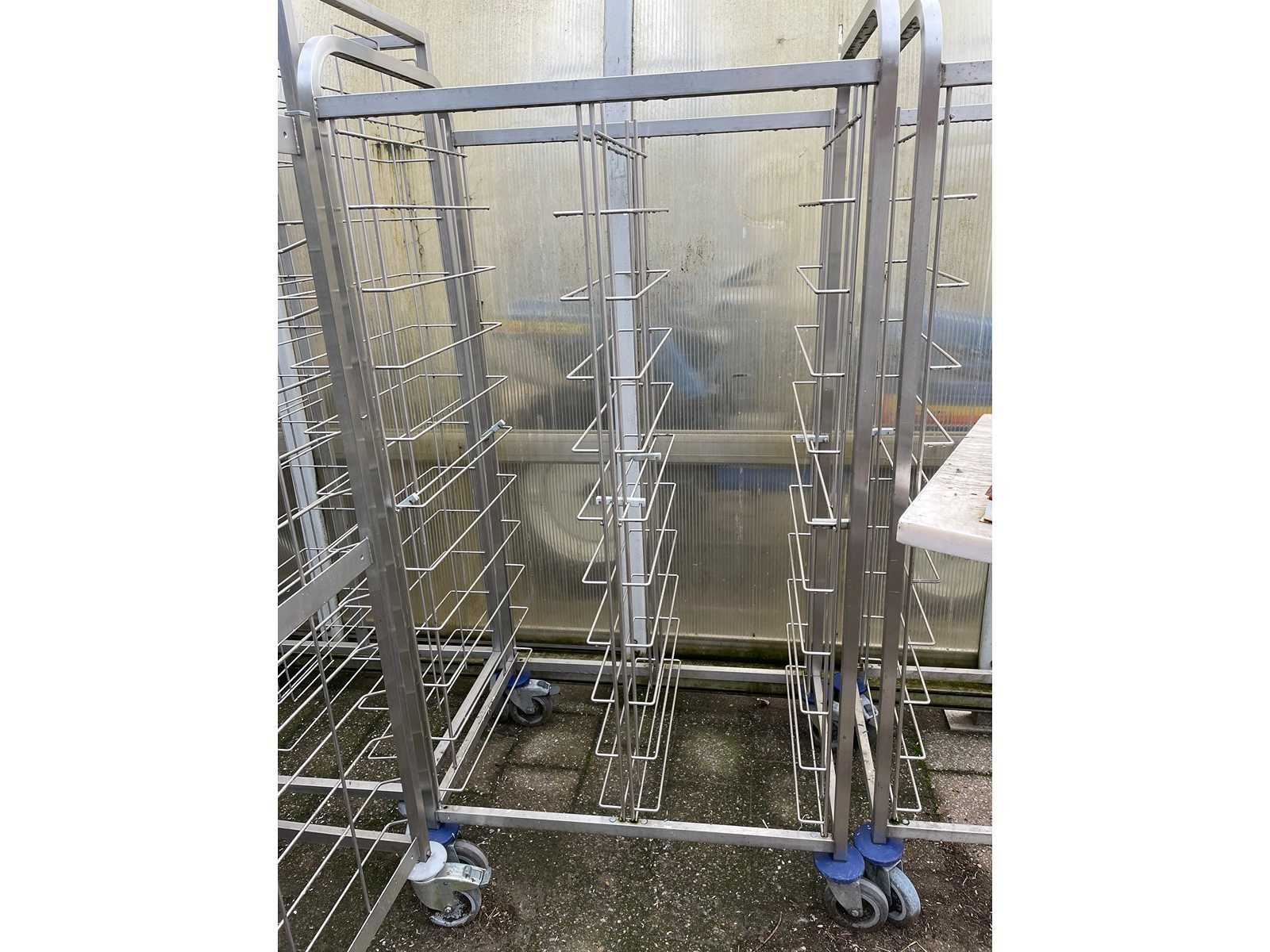 Regaalwagen voor 2 x 12 verdiepen voor GN1/1 bakken of plateaus; Nee Lengte: 92 Breedte: 69 Hoogte: 182 Materiaal: rvs