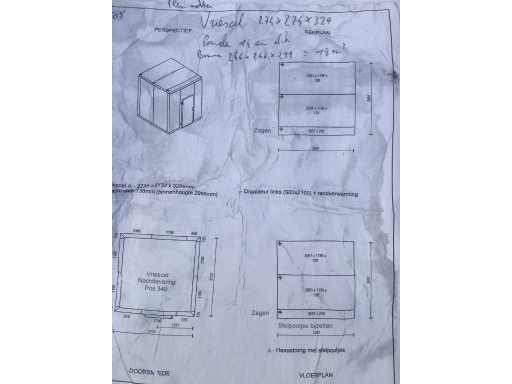 Isolatie 14cm dik; op 2 paletten; met vloer; ongebruikt; Nee Afmeting l: 2460mm Afmeting b: 2460mm Afmeting h: 2990mm Totale afmeting L: 2740mm Totale afmeting Breedte: 2740mm Totale afmeting Hoogte: 3290mm