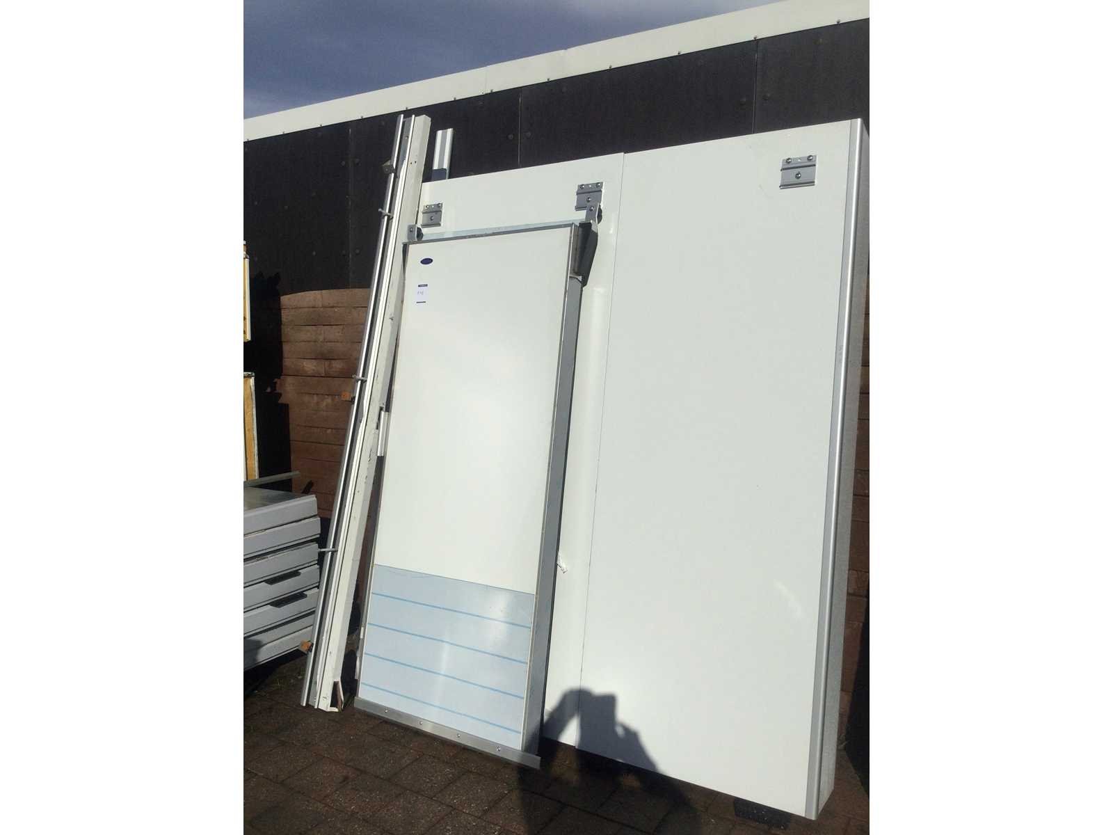 Schuifdeur in frontpaneel; met alu rail; Nee Merk: Carrier Afmeting l: 900mm Afmeting h: 2100mm Totale afmeting L: 2100mm Totale afmeting Hoogte: 2400mm