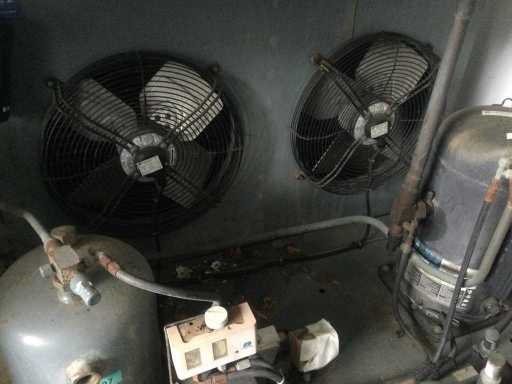 Installatie voor grote koelcel groenten en fruit, bestaande uit : 2 verdampers en 2 koelgroepen; 400V; 1 verdamper 295x75x50cm; 1 verdamper 345x75x50cm; Nee Merk: Copeland Koelcompressor: true Verdamper: true