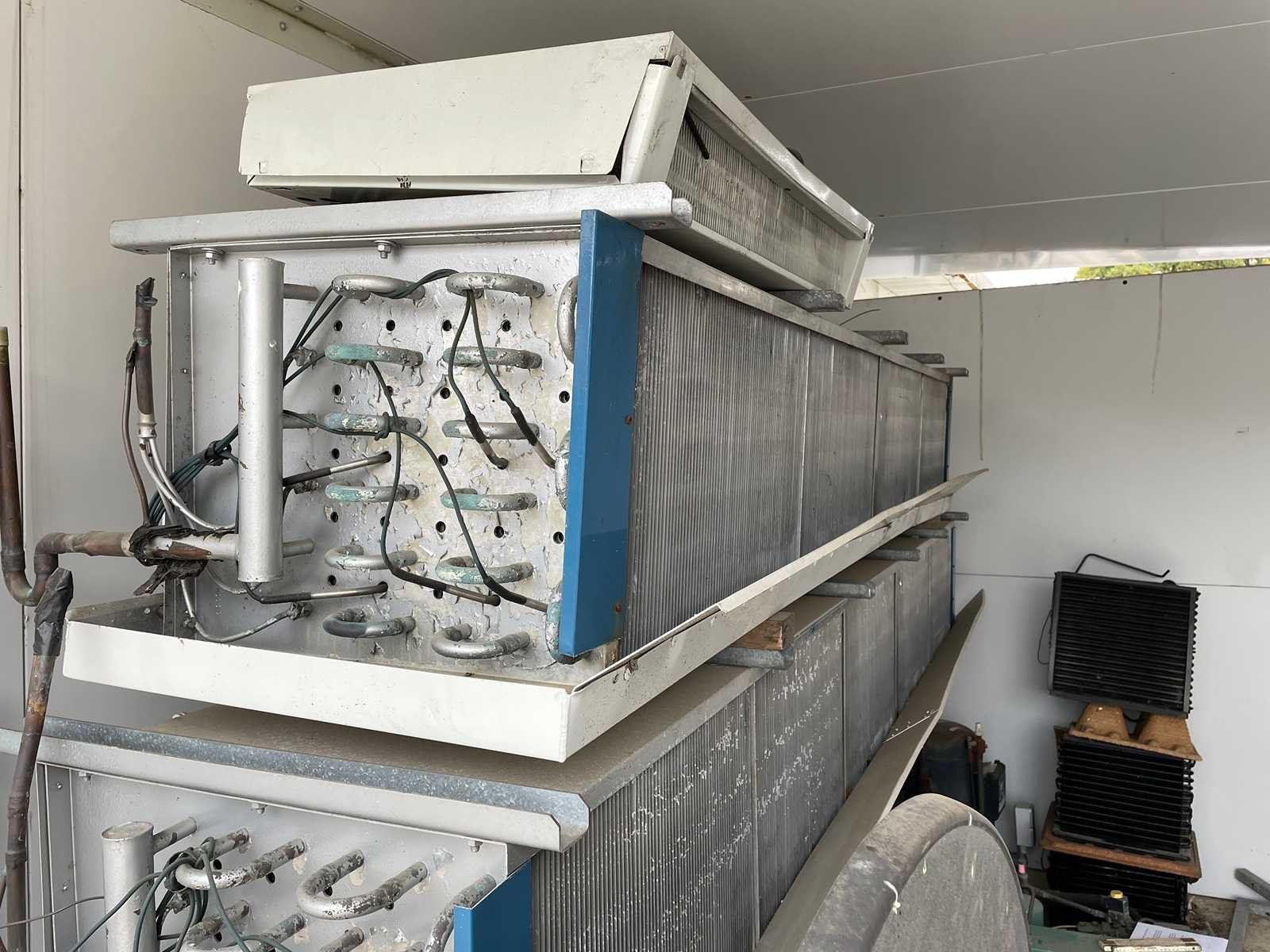 Installatie voor grote koelcel groenten en fruit, bestaande uit : met 1 verdampers en 1 koelgroep; 400V; verdamper 345x75x50cm; ook als ruimte koeling gebruiken; Nee Merk: Copeland Koelcompressor: true Verdamper: true Totale afmeting L: 3450mm Totale afmeting Breedte: 750mm Totale afmeting Hoogte: 500mm