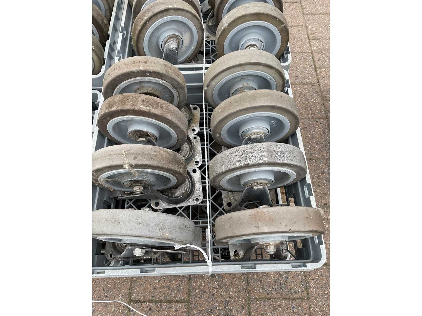 Bestaande uit : 8 wielen, waarvan 4 zwenkwielen met rem; 4 vaste wielen; vork in rvs; plaatbevestiging; niet-strepende, elastische rubberband; draagkracht 400kg; met bak; Nee Merk: Tente Type: u-200 Totale afmeting L: 200mm Totale afmeting Breedte: 46mm Totale afmeting Hoogte: 240mm