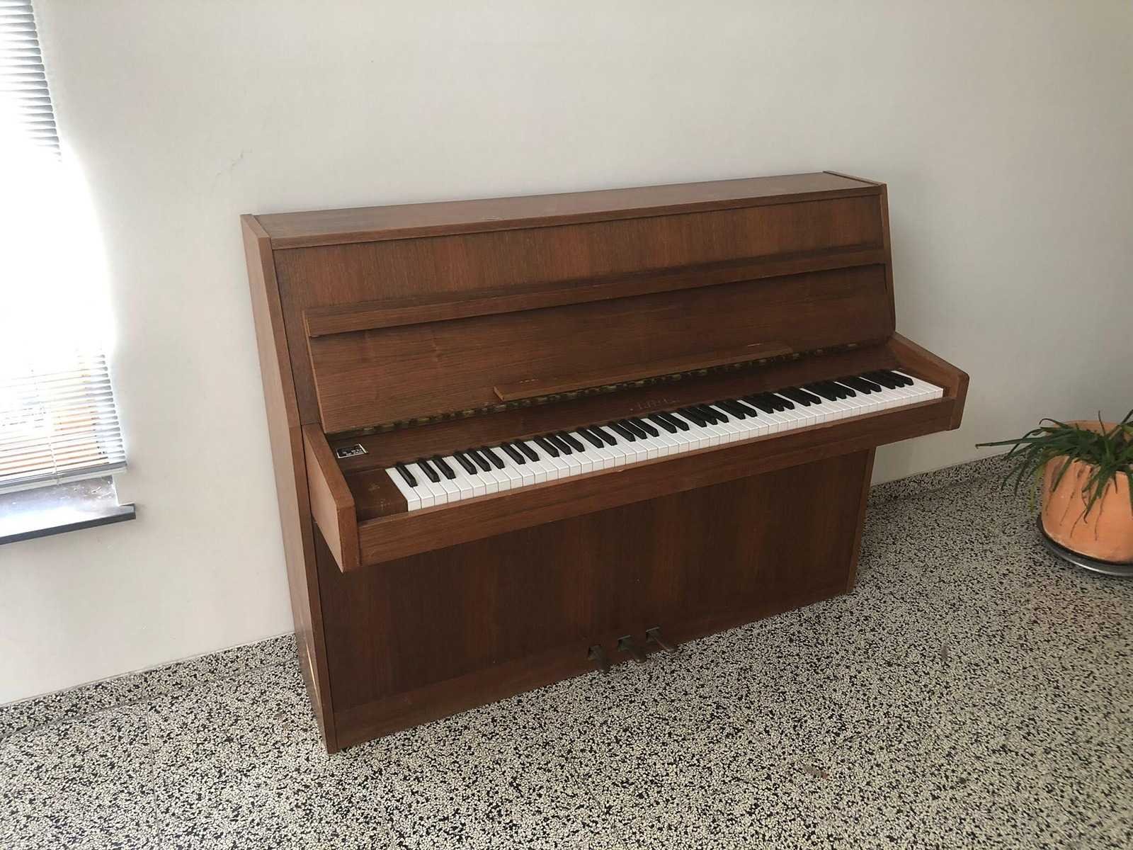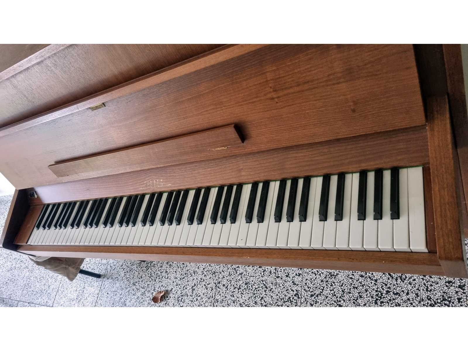 Buffetpiano van notelaar. Merk/fabrikant: Rippen. Metalen frame. No Merk: Rippen