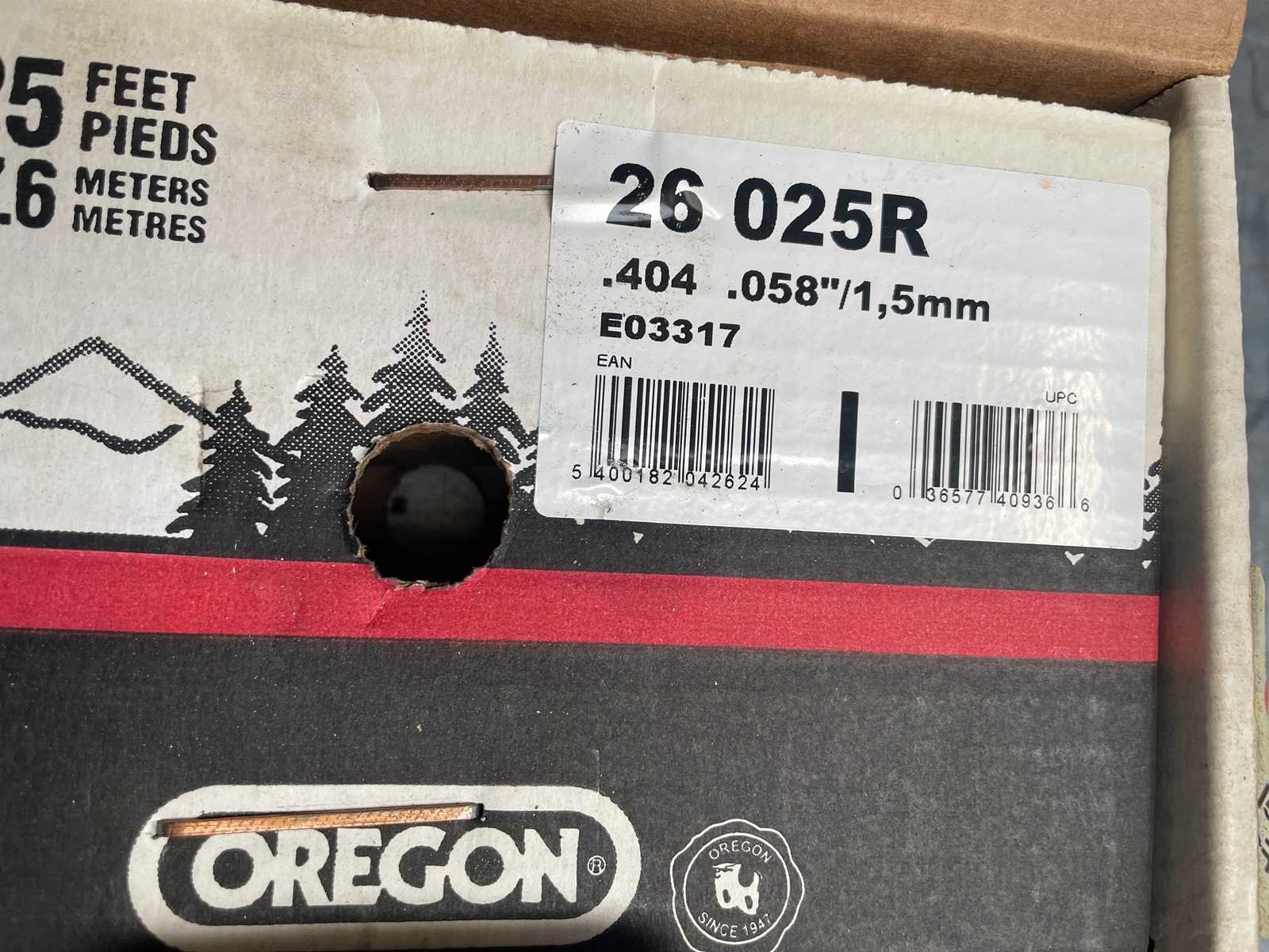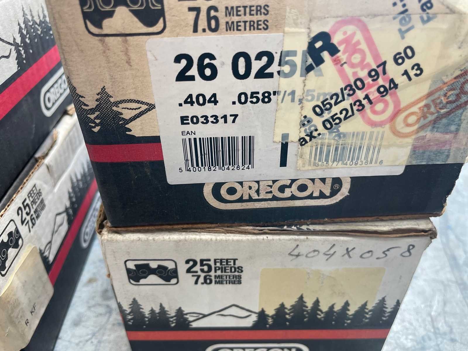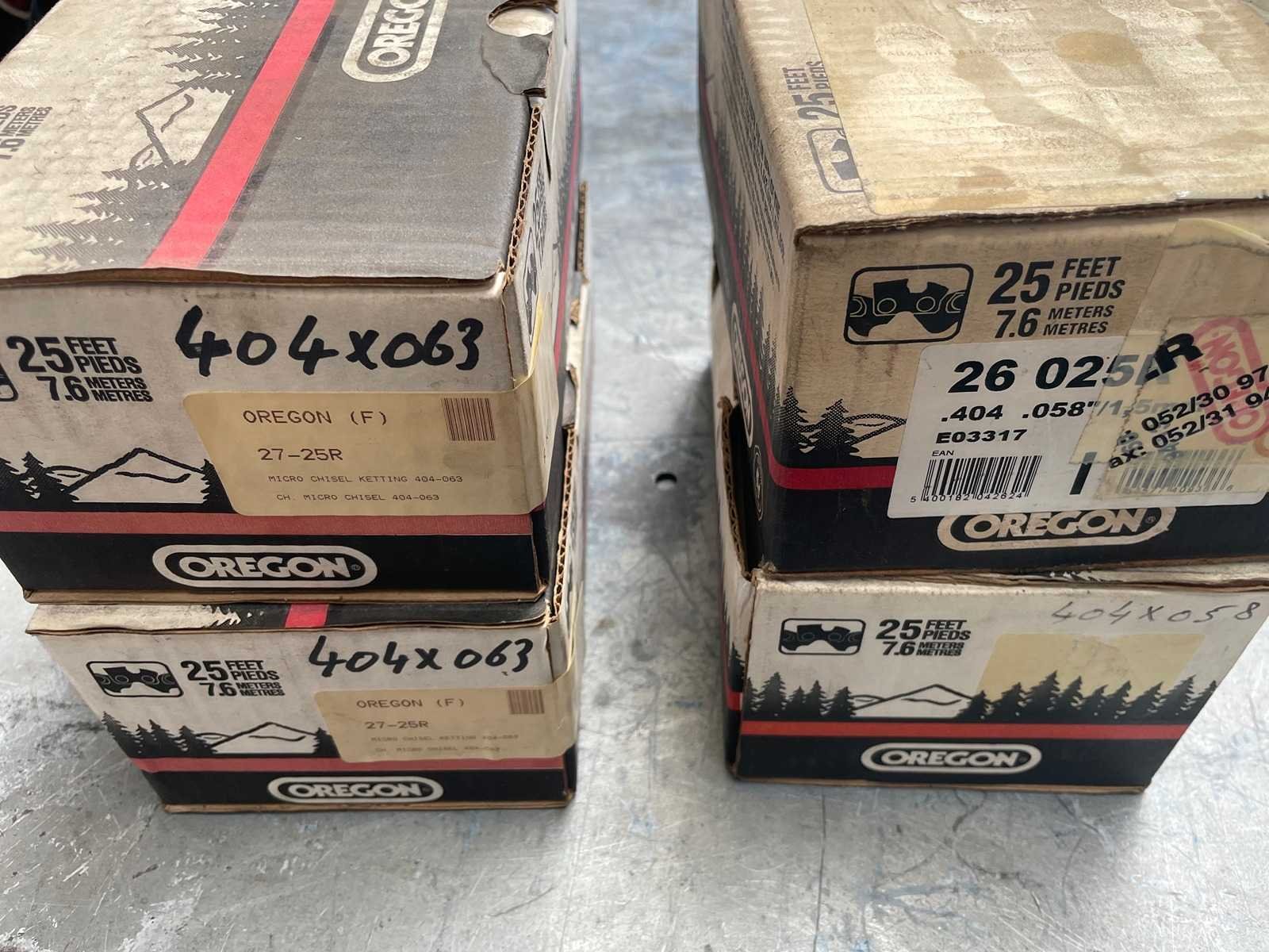 4 x Rollen 7.6 m Zaagketting 404" - 2 rollen 058" - 2 rollen 063". Incl schakels en verpakkingsdozen. Ongebruikt - rollen zijn compleet ongebruikt. Zaagketting 404" . Nee Merk: Oregon Type: 404