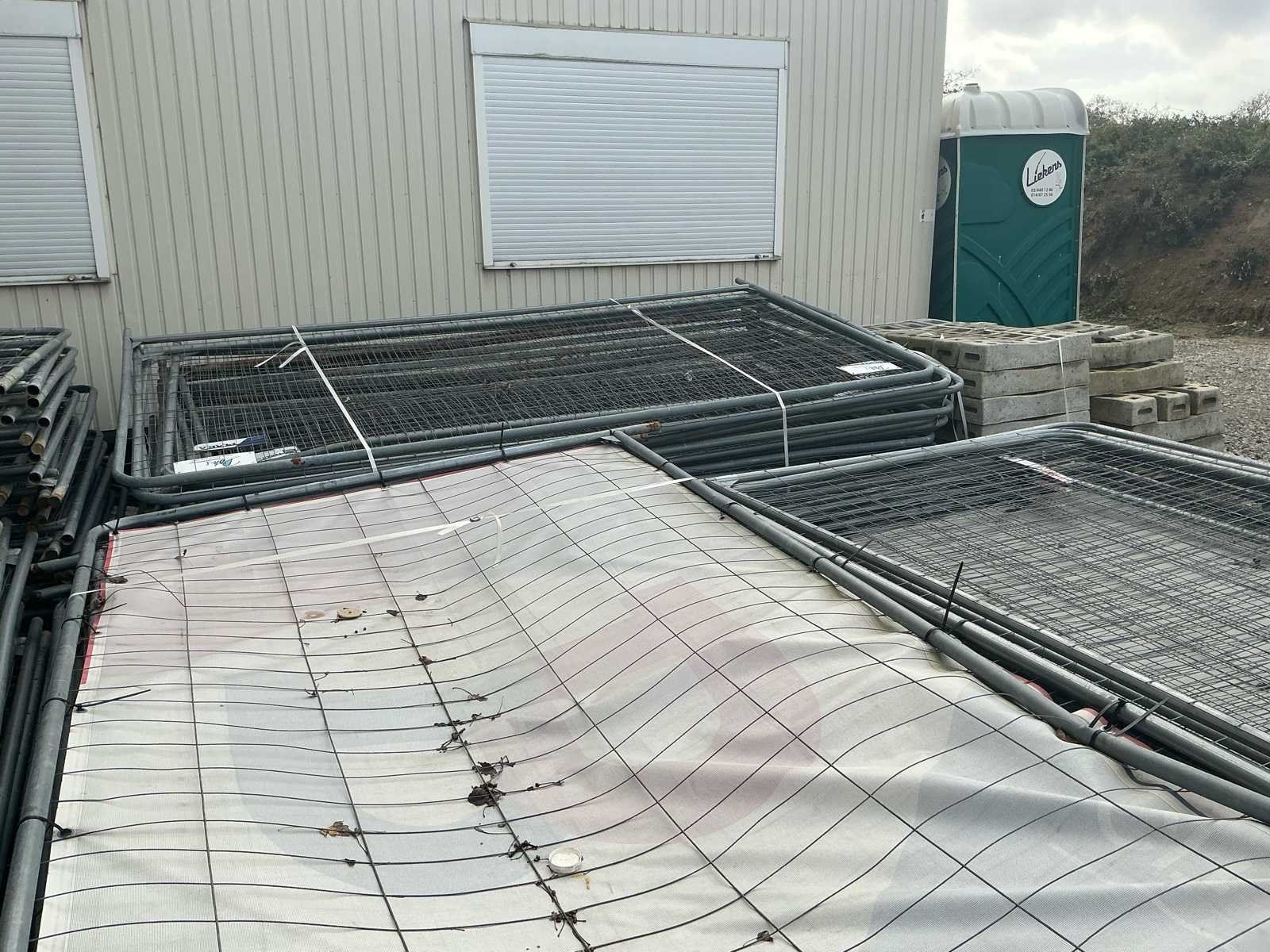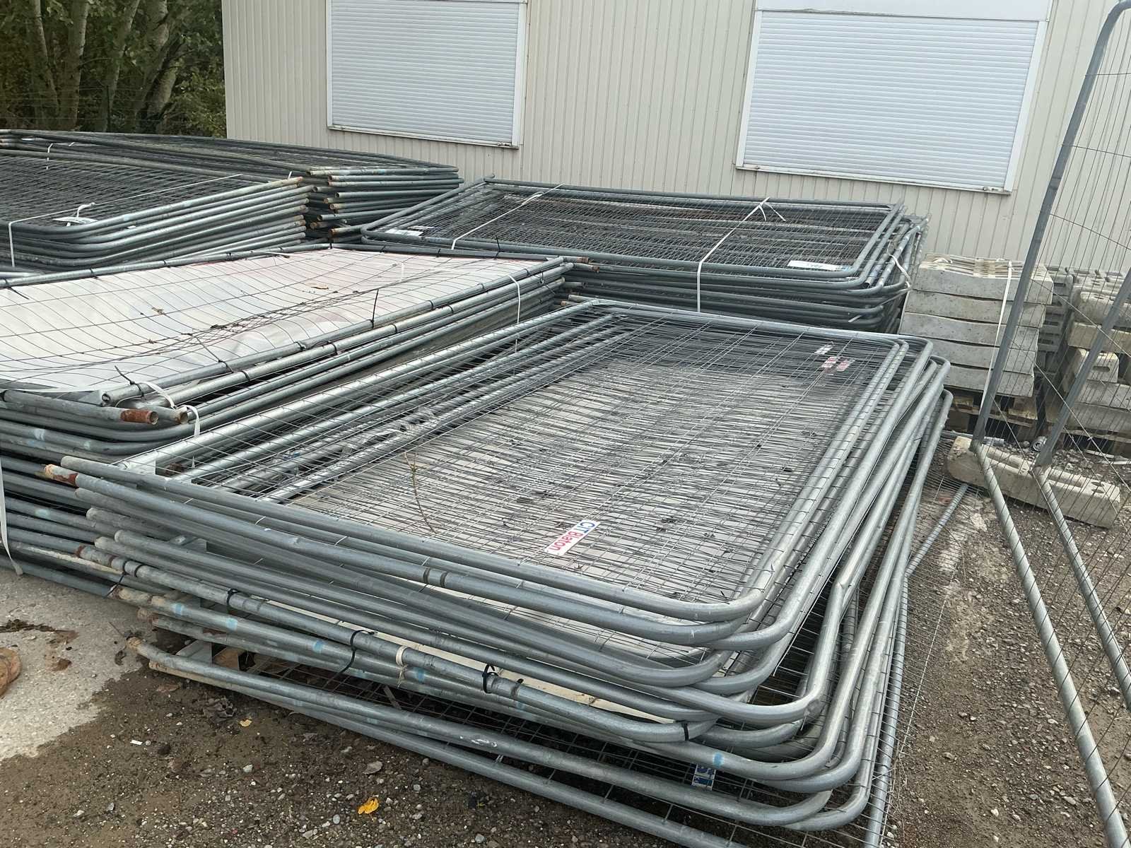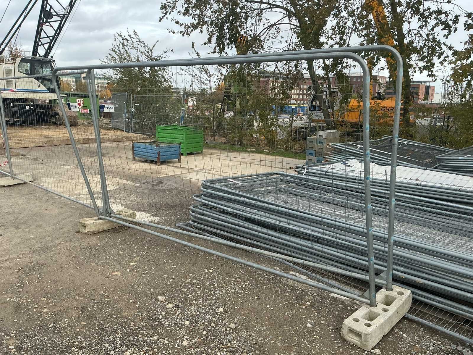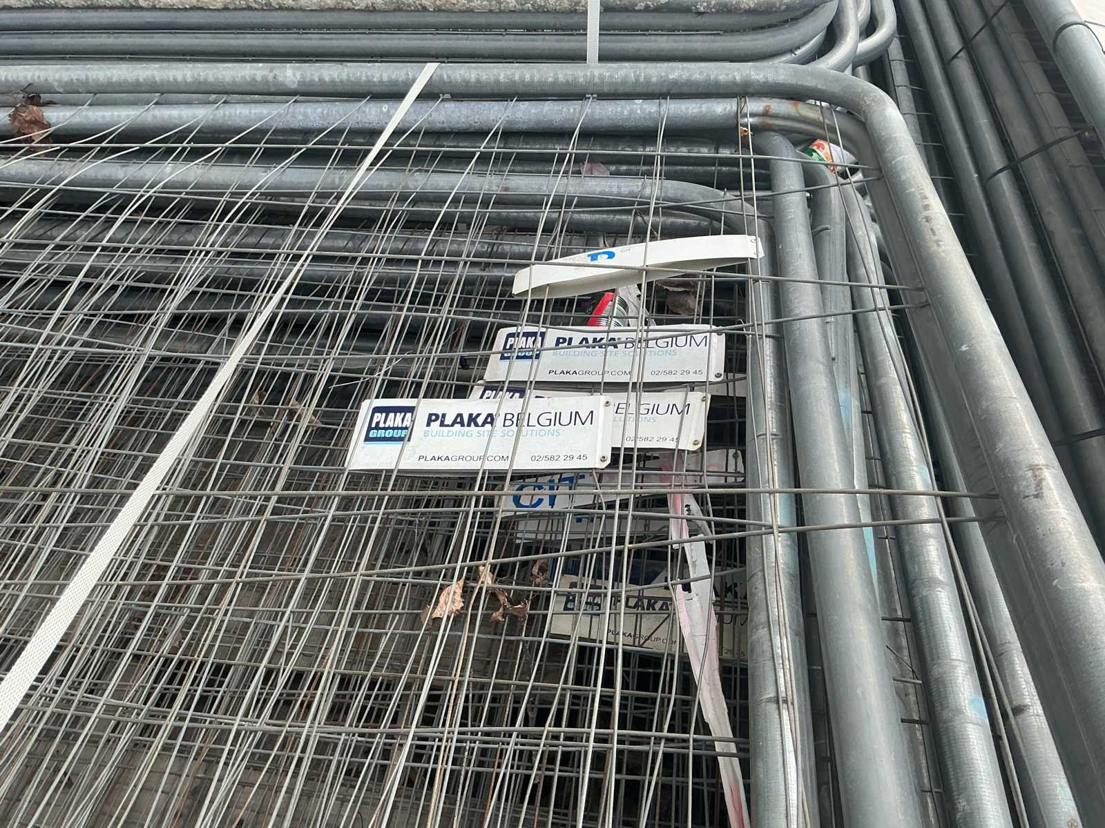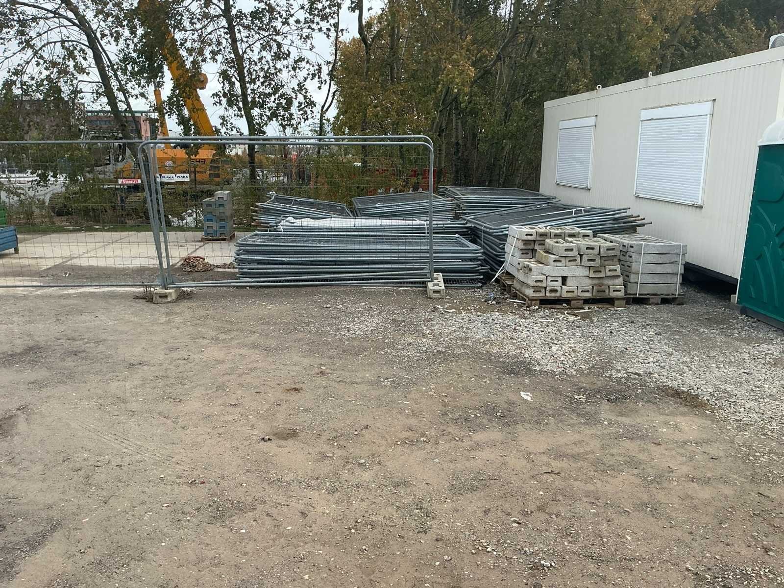 Opkuis van een werf. Hierbij verkopen ze een 150tal hekken met bijpassende (100tal) betonvoeten. No Merk: Plaka buis solutions. Type: Hekken en betonvloeren.