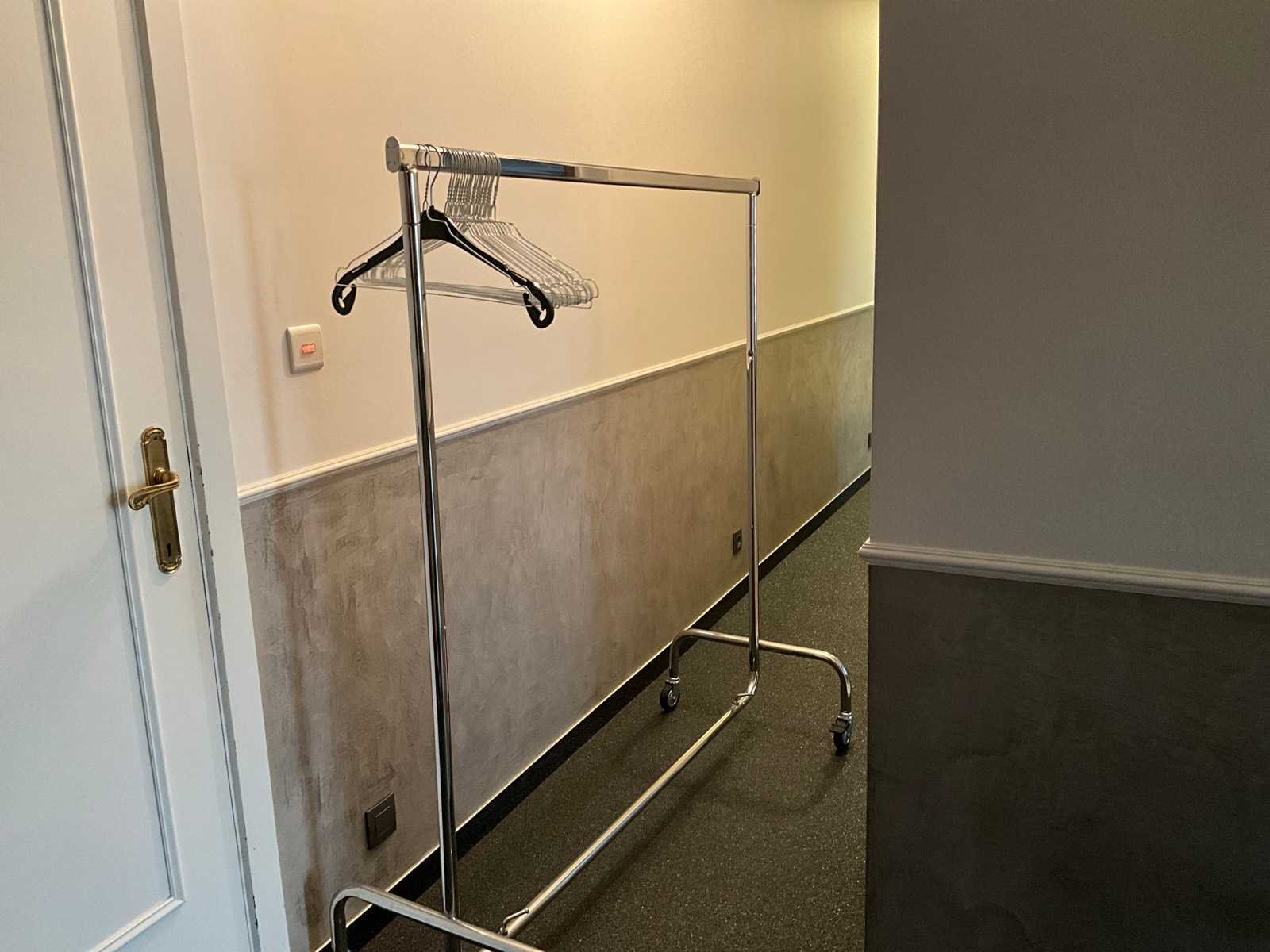120cm lang en kan worden uitgeschoven naar 220 cm.153 cm hoog. Met kapstokken. Nee