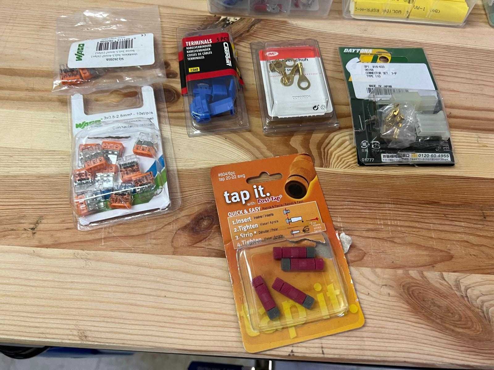 Een gemengd lot bestaande uit o.a. verschillende elektrische kabels, soldeertin, isolatietape, zekeringen, connectoren, krimpkous, aansluitklemmen, kabelschoentjes en assortimentsdoosjes. Ideaal voor werkplaats, hobbyist of garage. Alles in gebruikte staat maar in goede, bruikbare conditie. Nee Merk: Diverse merken