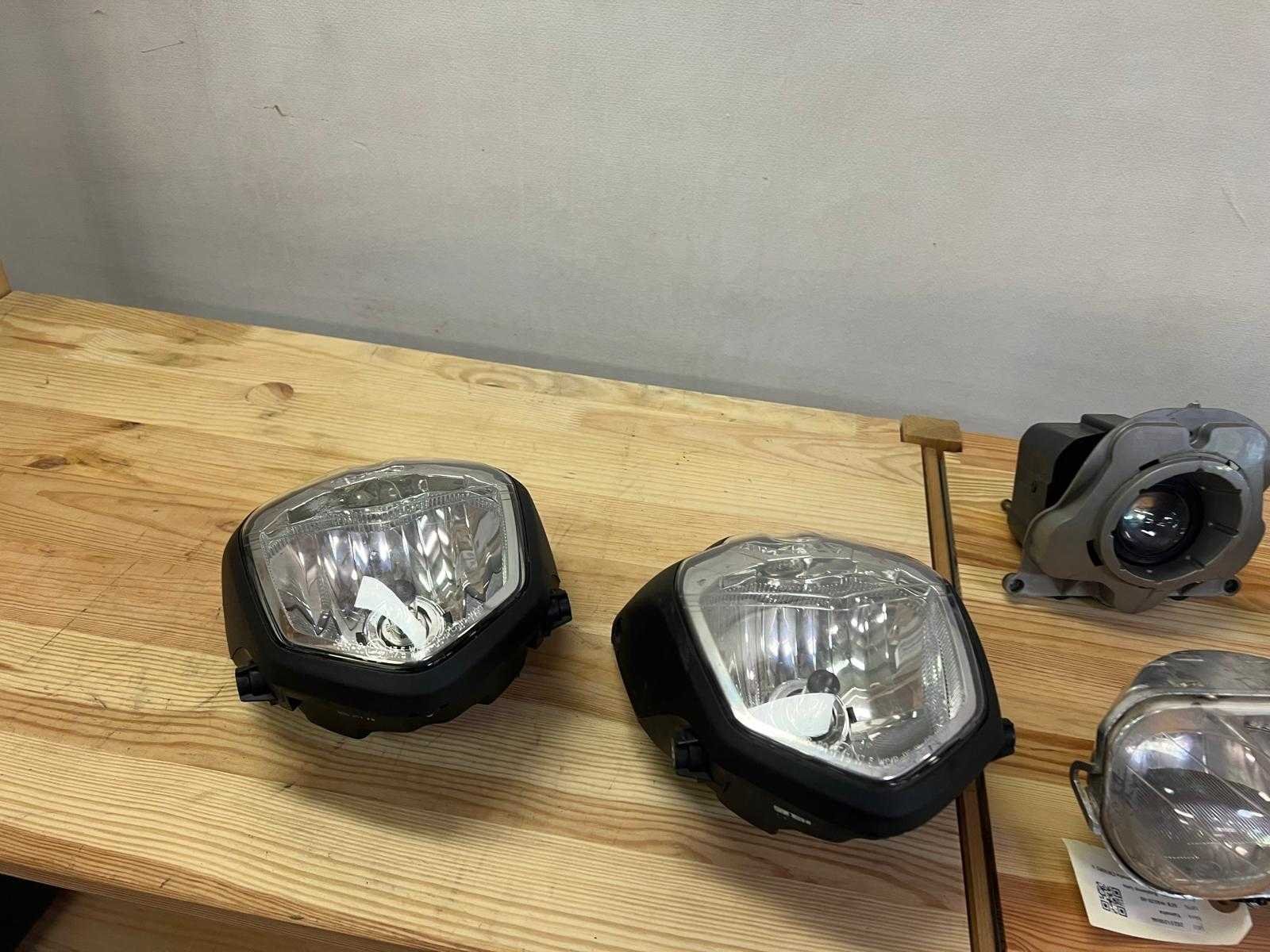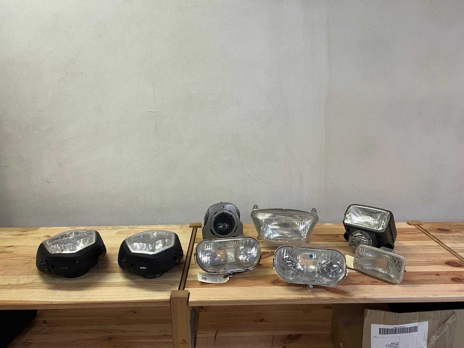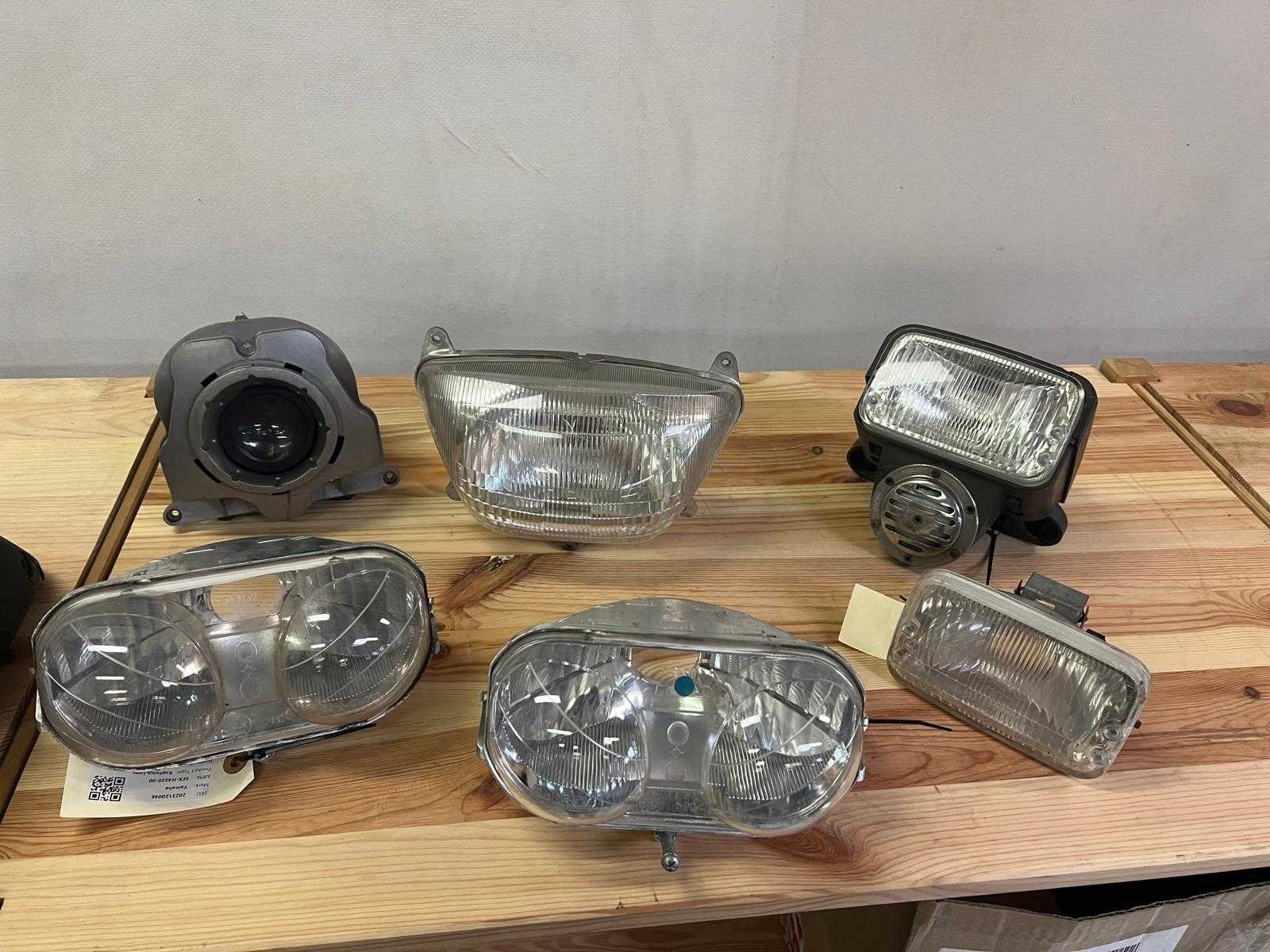 Partij bestaande uit diverse koplampunits en behuizingen voor motorfietsen. Merken o.a. CEV, Tri.o.m. en Aprilia. Verschillende vormen en types, geschikt voor verschillende motorfietsen (onder andere dubbele en enkele lampunits, projector-type, halogeen). Sommige onderdelen voorzien van originele labels of type-aanduidingen. Ongetest, visueel in gebruikte maar nette staat. Nee Merk: T.r.i.o.m. Product type: Koplampen / koplampunits Kleur: Zilver / Transparant Materiaal: Kunststof en metaal