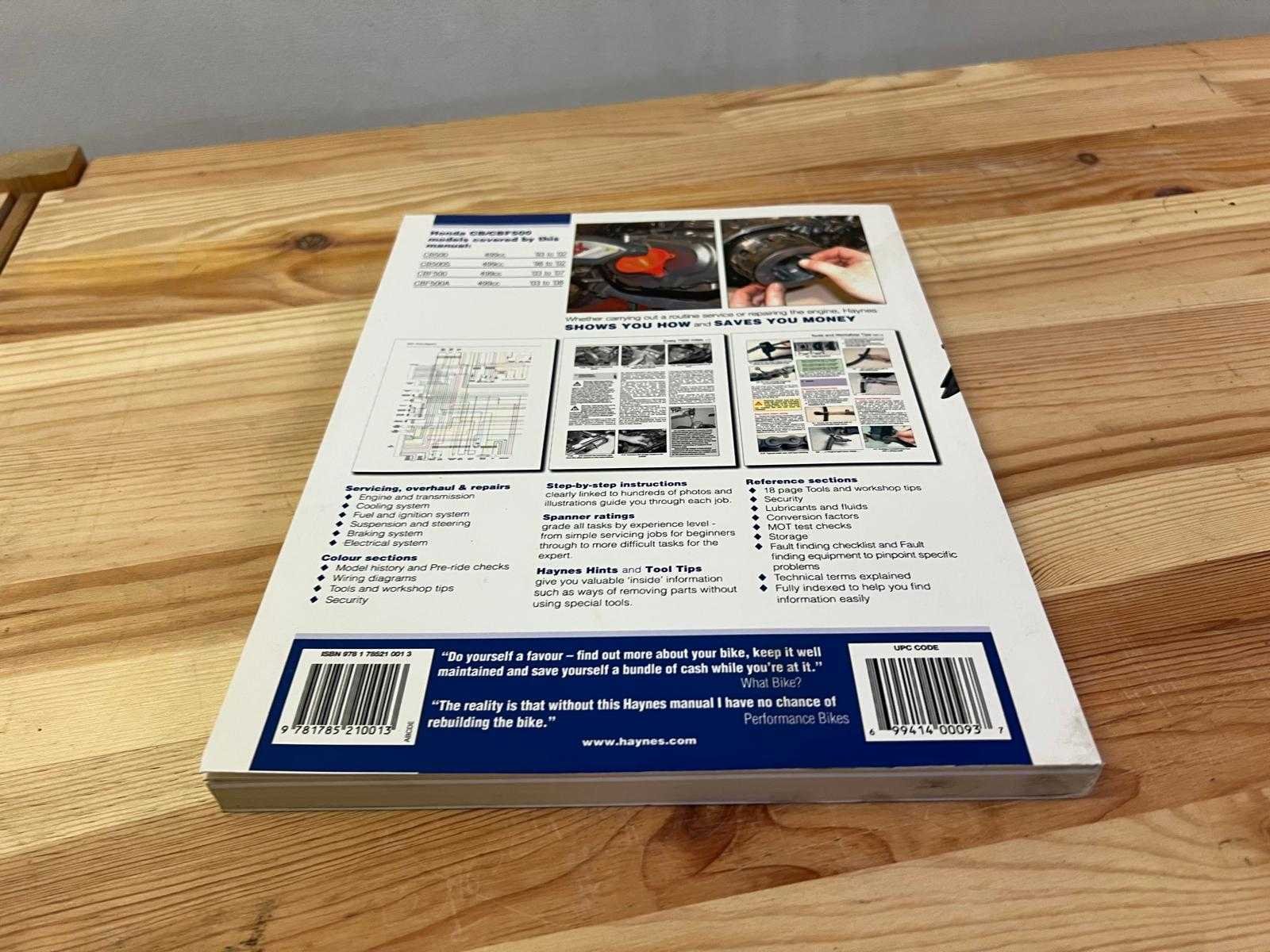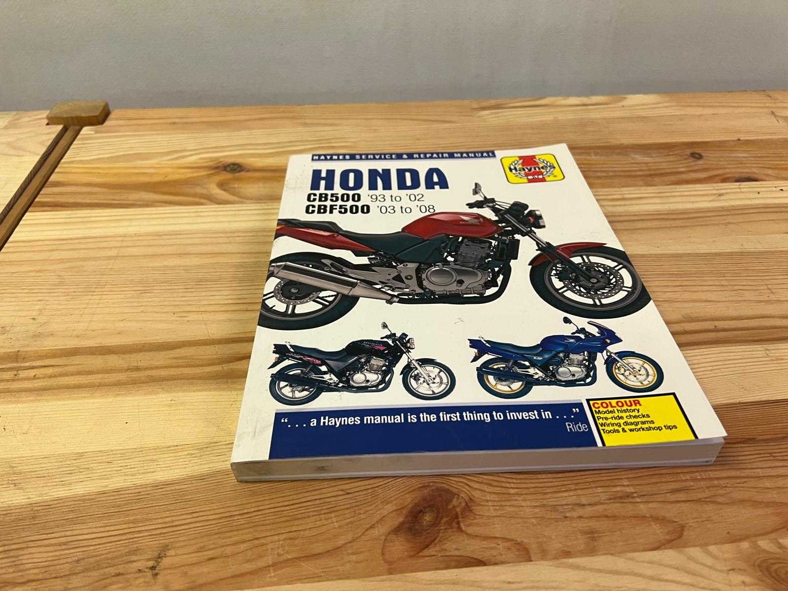 Origineel Haynes Service & Repair Manual voor Honda CB500 (1993–2002) en Honda CBF500 (2003–2008). Bevat onderhouds- en reparatie-instructies, elektrische schema’s, modelgeschiedenis, gereedschapstips en bedradingsdiagrammen. ISBN-13: 9781844257995 Goede staat met lichte gebruikssporen aan de kaft. Nee Merk: Haynes