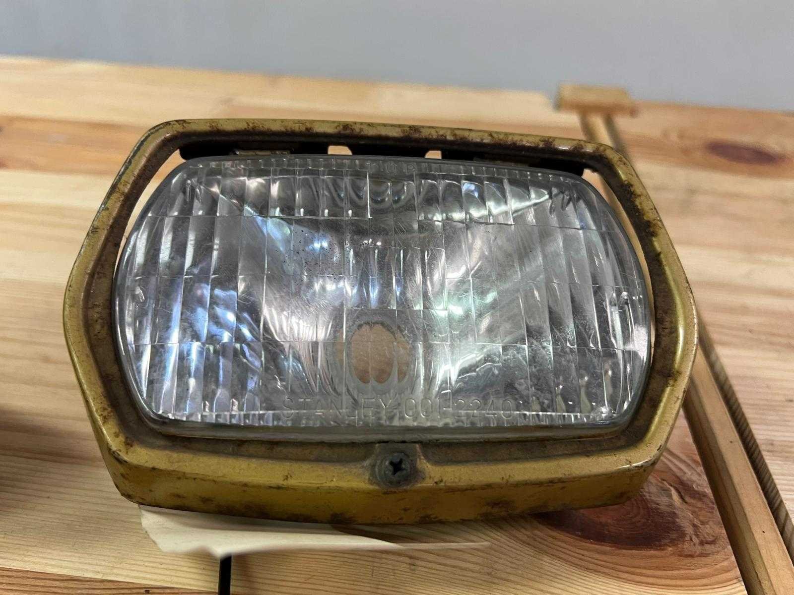 Set van 3 originele Japanse motorfiets koplampen van de merken Stanley en Raybrig. Bevat: - 1x Raybrig halogeenkoplamp met helder glas en kunststof behuizing van Stanley. - 2x Stanley koplampen (types 3P016-0294 en 001-3400) met kunststof behuizing. Alle lampen werken op 12V en zijn geschikt voor motorfietsen, ATV’s of custom builds. Nee Merk: Stanley & Raybrig Product type: Koplampunits Kleur: Transparant / grijs / chroom Materiaal: Metaal en kunststof met glazen lens