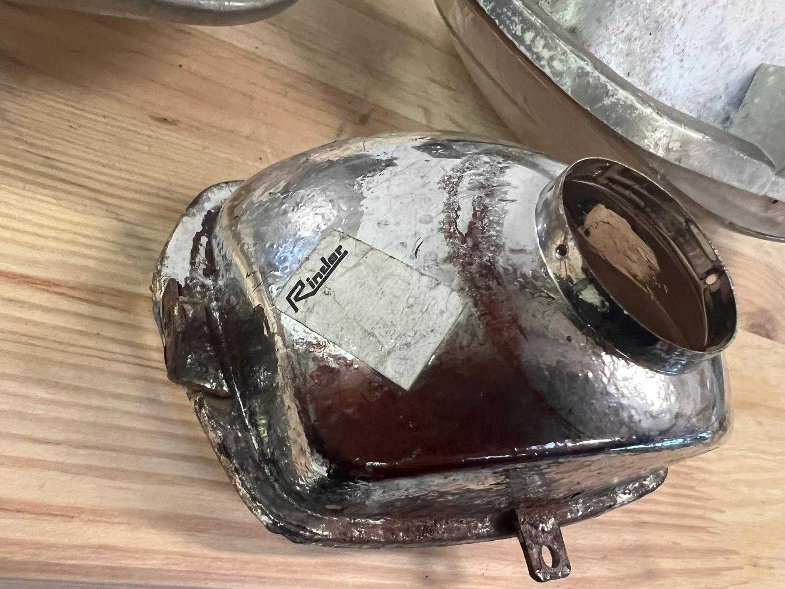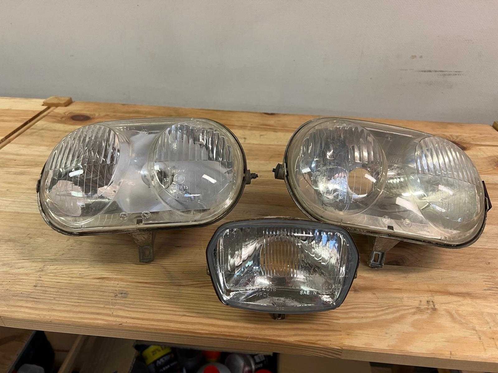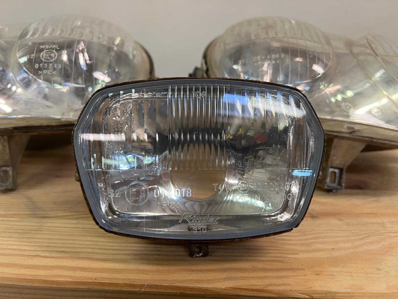 Partij van 3 originele Rinder motorfiets koplampen. Bevat: - 2x dubbele Rinder koplampen met glasheldere lens en metalen houder - 1x enkele Rinder koplamp met halogeenfitting Spaanse kwaliteitsverlichting met E-keur (CE-4002 / S2). Geschikt voor motorfietsen, scooters, quads of custom projecten. In gebruikte maar goede staat, met lichte gebruikssporen. Nee Merk: Rinder Product type: Motorfiets koplampunits Kleur: Transparant / chroom Materiaal: Metaal en PMMA (kunststof lens)