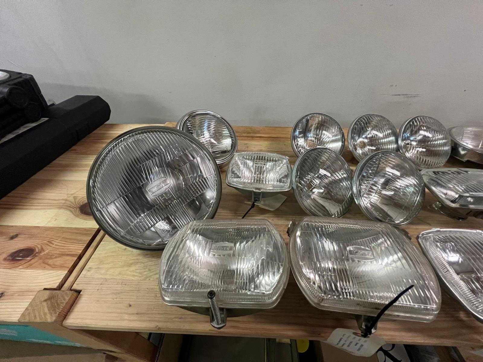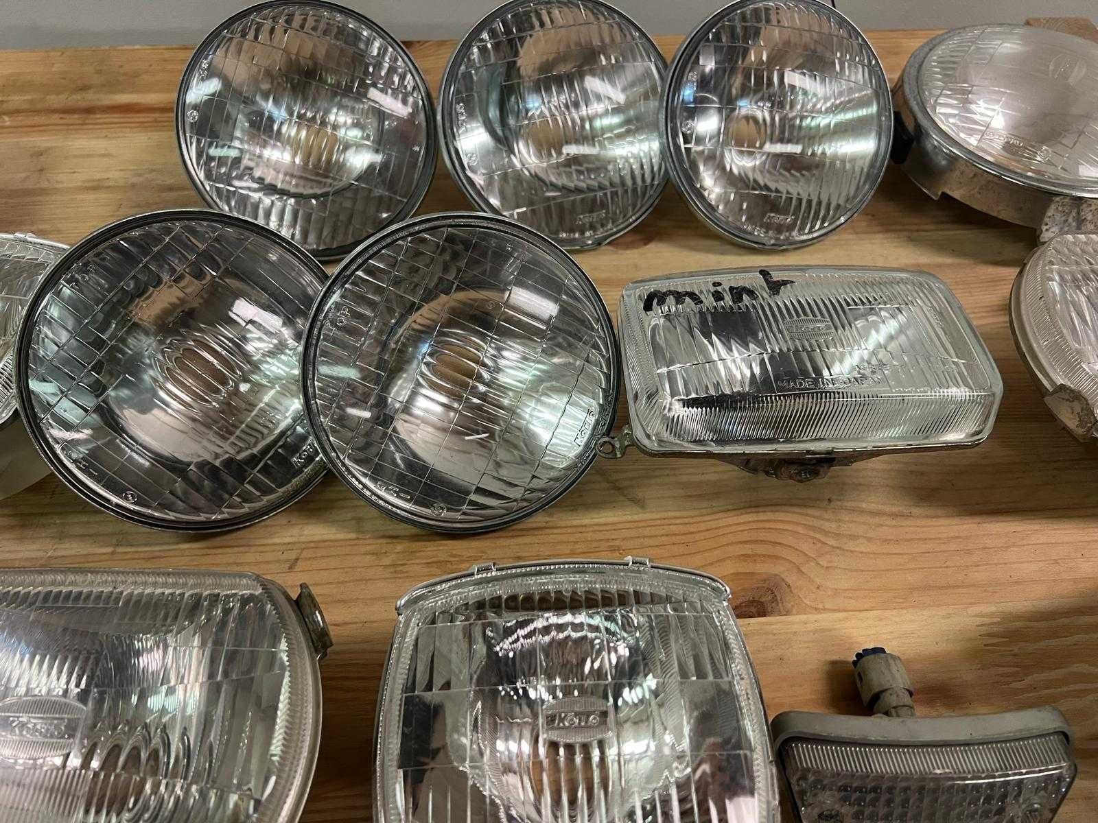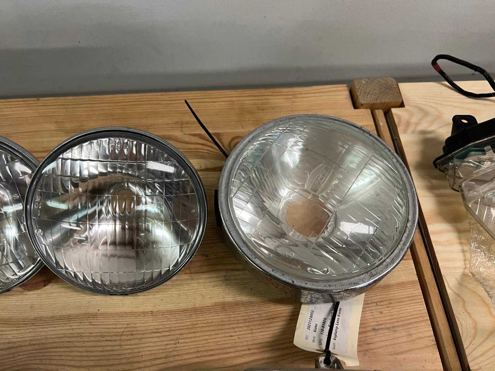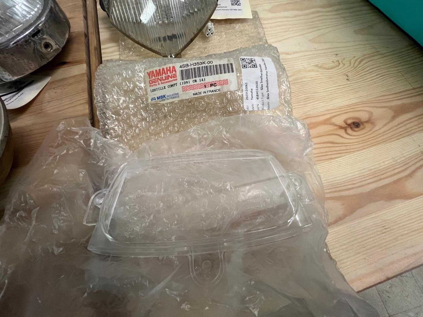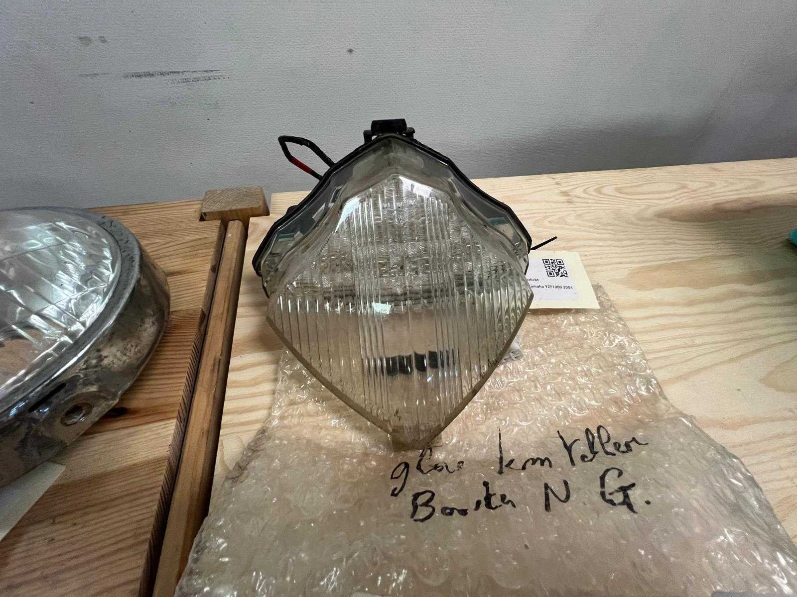 Partij van 18 koplampen en lenzen, voornamelijk van het merk KOITO, enkele originele Yamaha-onderdelen (o.a. onderdeelnummer 4SB-H3535K-00). Mix van ronde en rechthoekige modellen. Sommige lampen ongebruikt of in originele verpakking (Yamaha Genuine Parts). Geschikt voor klassieke en moderne motorfietsen, onder andere Yamaha en MBK. Ideaal voor herstelling of restauratieprojecten. Wordt verkocht als één lot. Lampen niet individueel getest. Nee Merk: KOITO / Yamaha Product type: Koplampen / voorlichten Kleur: Transparant (helder glas) Materiaal: Metaal en glas