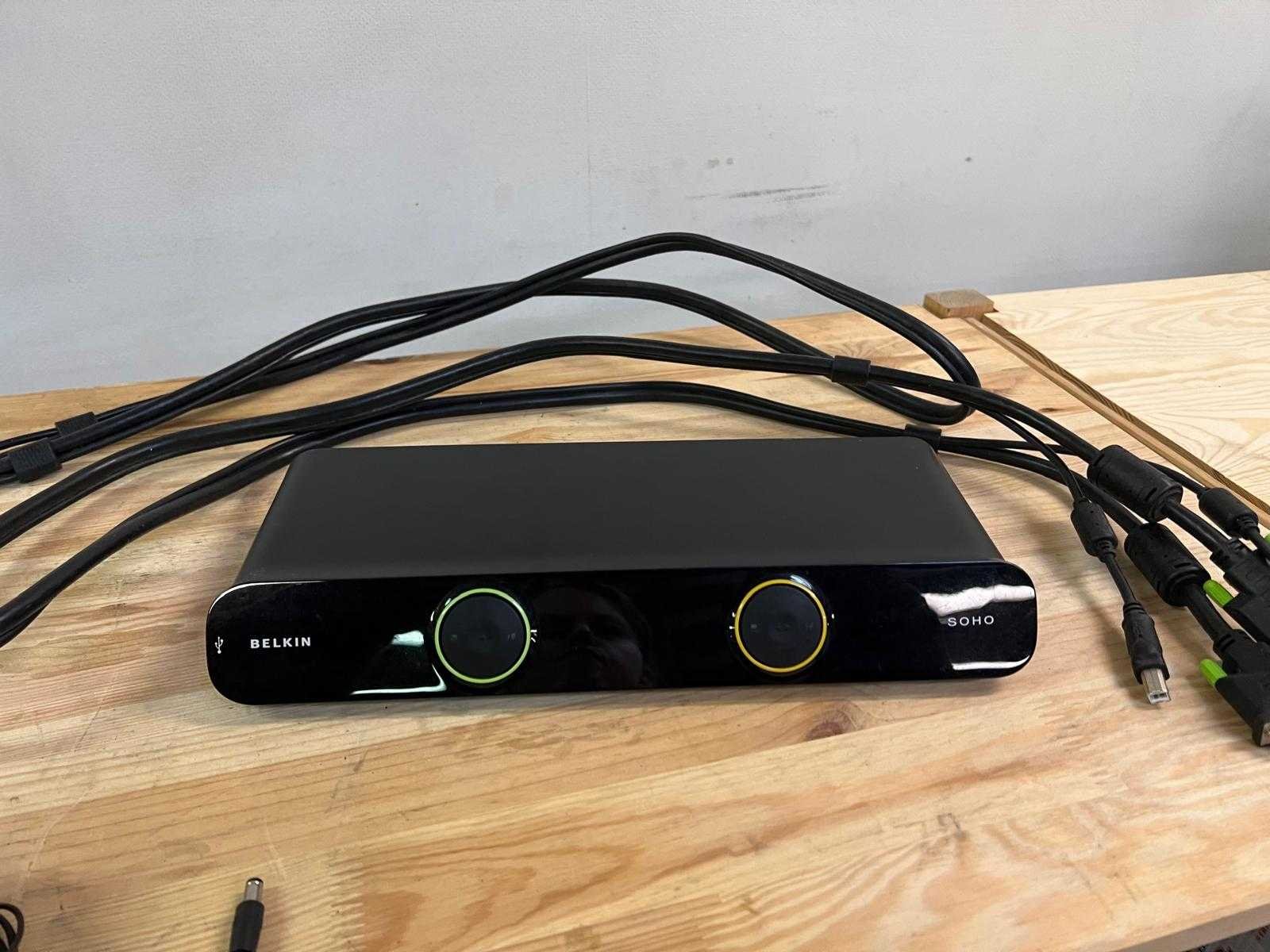 Belkin SOHO 4-poorts KVM-switch met DVI, USB en audio. Laat toe om tot vier computers te bedienen met één toetsenbord, muis en monitor. Inclusief twee complete kabelsets (DVI + USB + audio) en originele 12V-voeding. Kleurgecodeerde poorten (geel/groen) voor eenvoudige aansluiting. Ideaal voor thuiswerk of IT-omgevingen met meerdere computers. Nee Merk: Belkin Type: F1DS104L (of gelijkaardig – 4-poorts DVI/USB-versie) Model: F1DS104L (of gelijkaardig – 4-poorts DVI/USB-versie) Product type: KVM-switch (Keyboard Video Mouse switch) Transmissiesnelheid: USB 2.0 Kleur: Zwart Materiaal: Kunststof en metaal