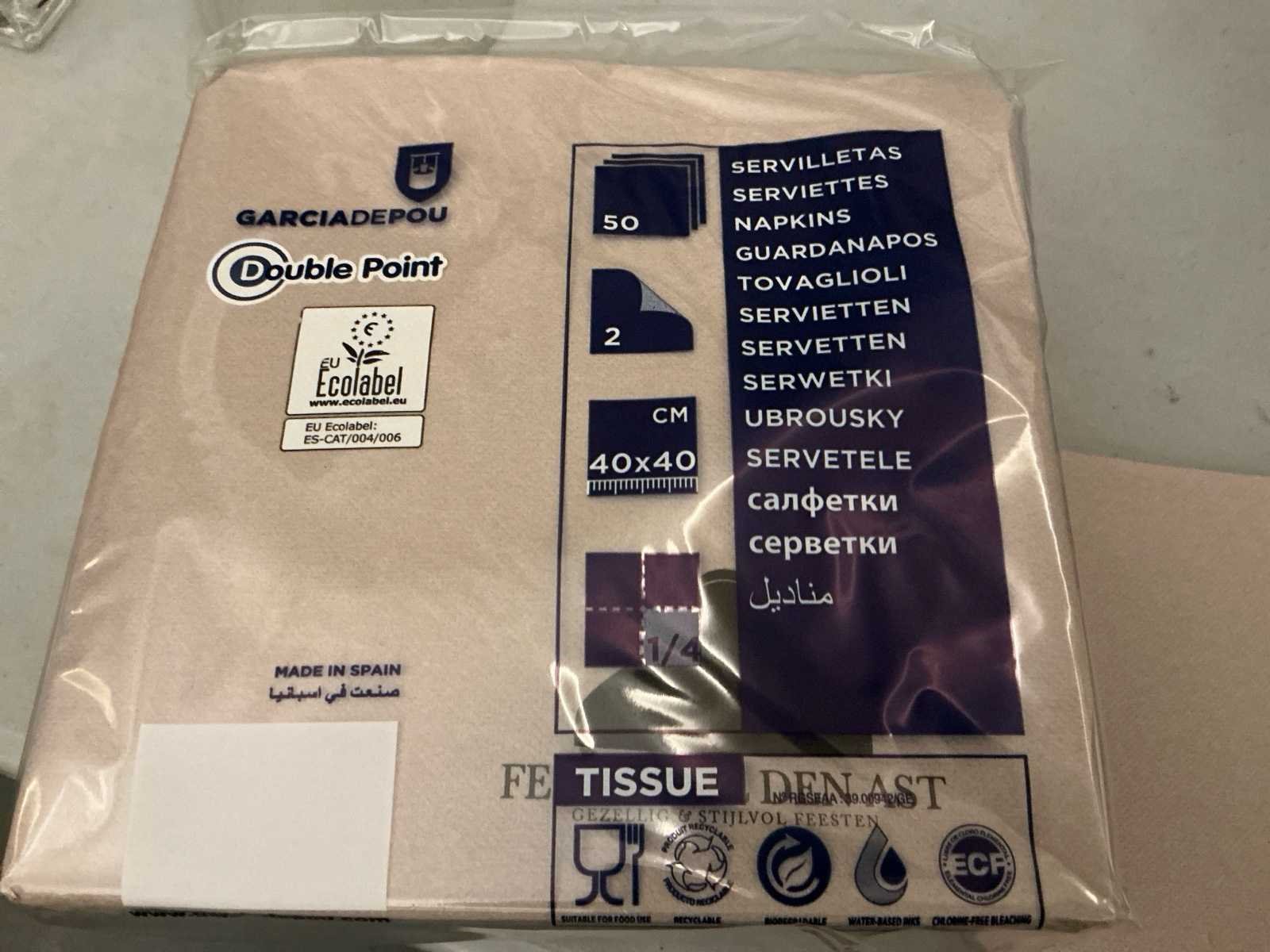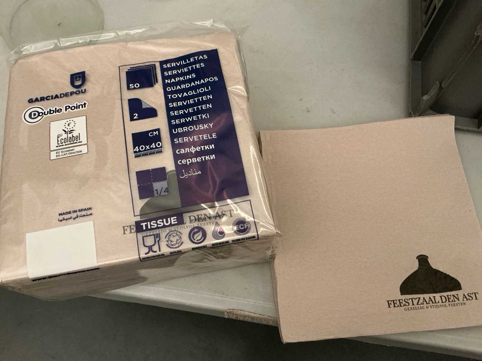 Lot schorten, zwarte stoffen servietten en 4800 beige high Quality papieren servietten No